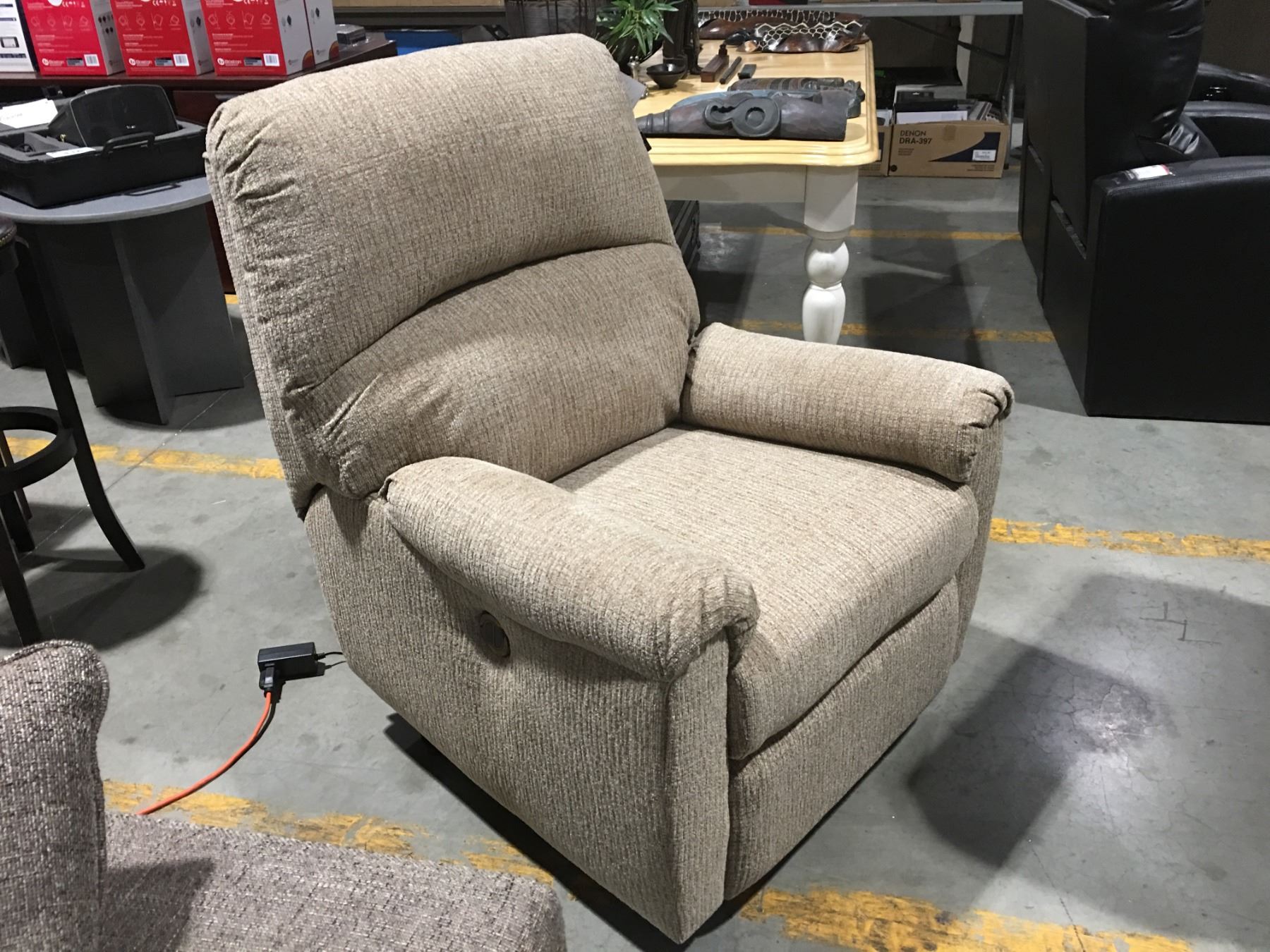 LIGHT BEIGE UPHOLSTERED POWER RECLINER