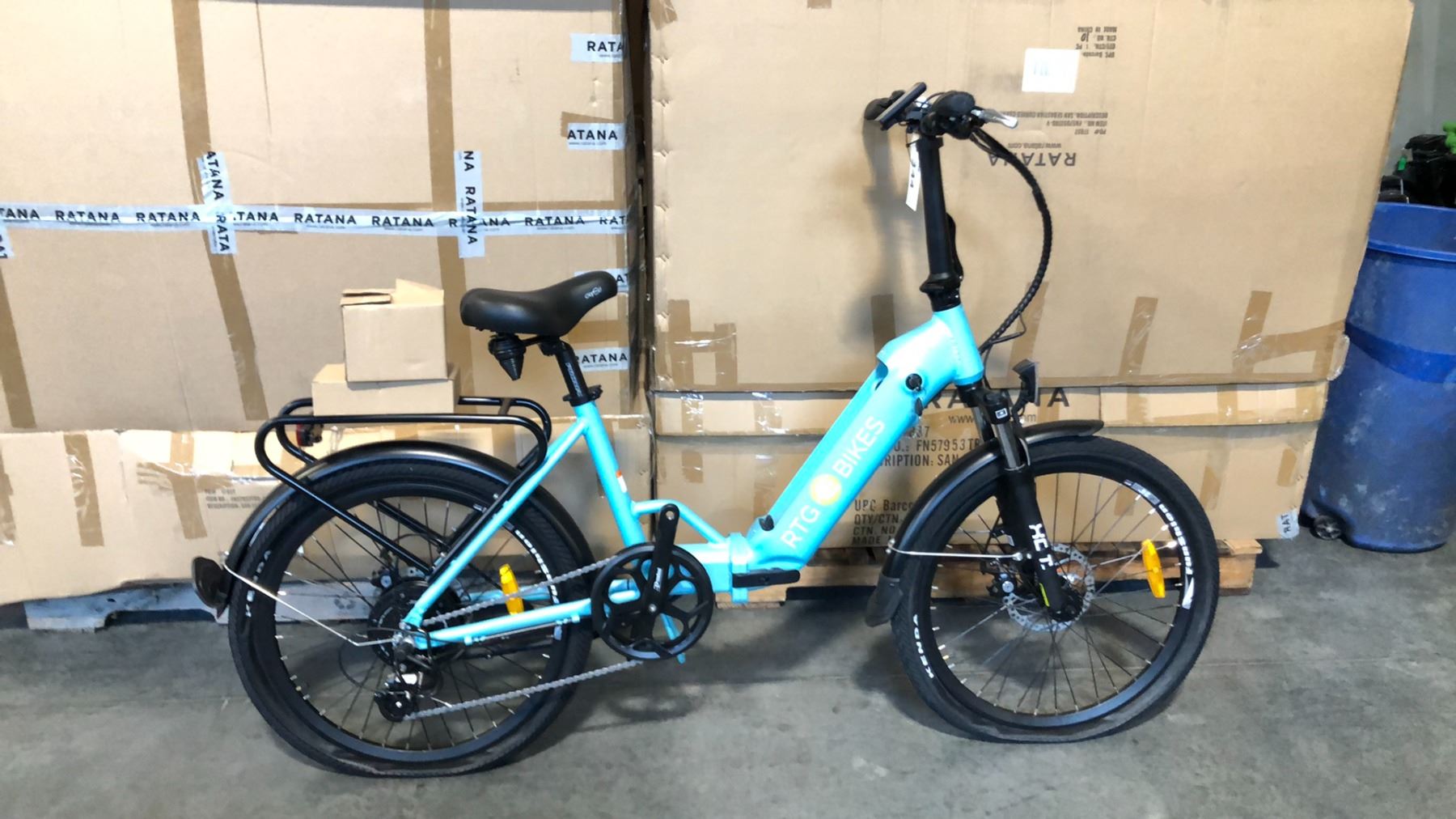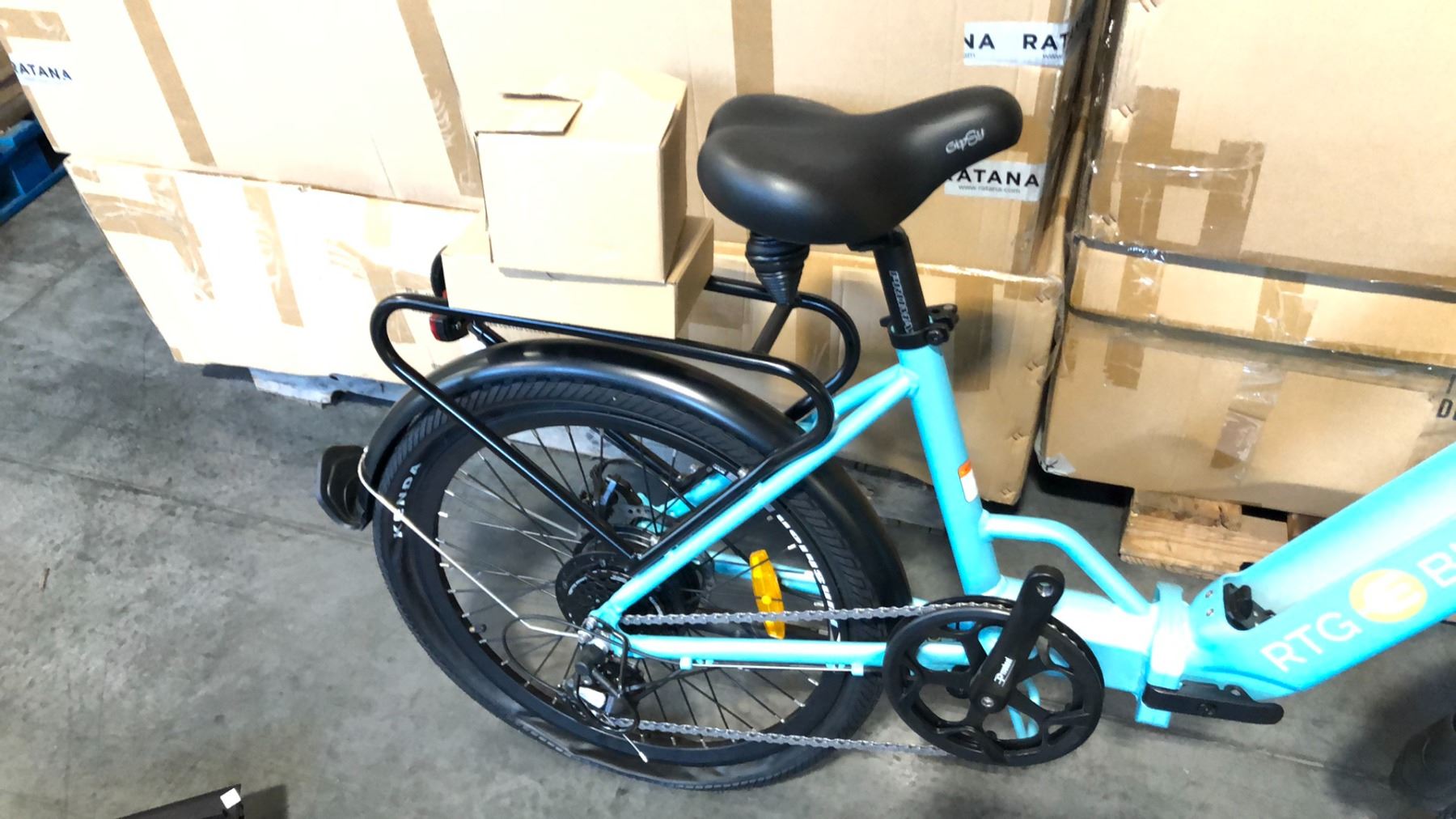 LIGHT BLUE FOX 24 8-SPEED ELECTRIC BICYCLE - CHARGER AND KEYS *IN BOX* - NO BATTERY -