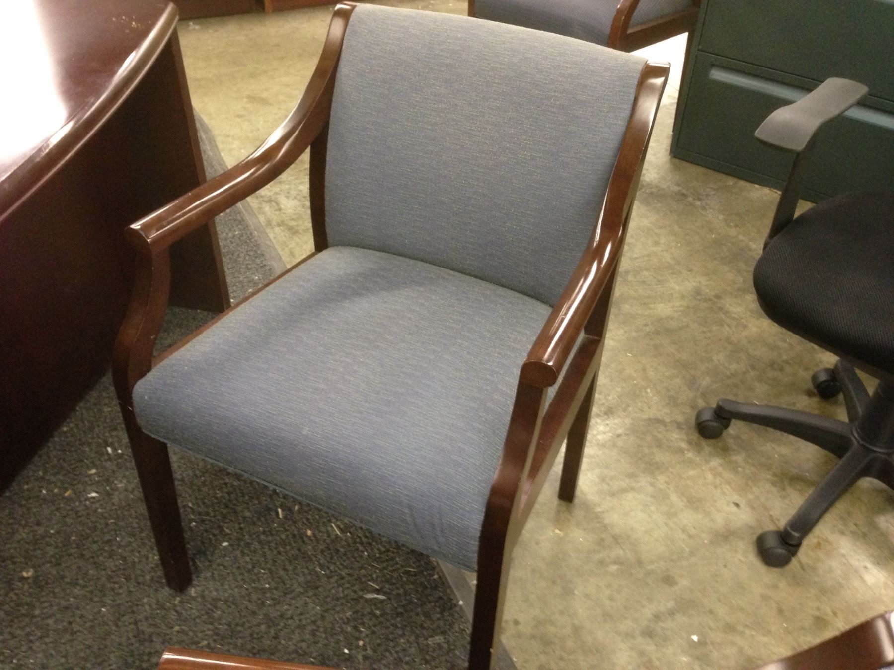 LIGHT BLUE KIMBALL MAHOGANY FRAME CLIENT CHAIR