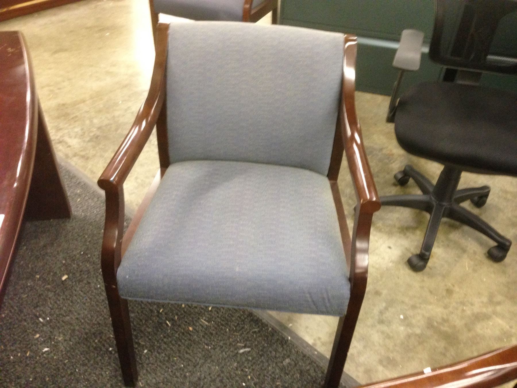 LIGHT BLUE KIMBALL MAHOGANY FRAME CLIENT CHAIR