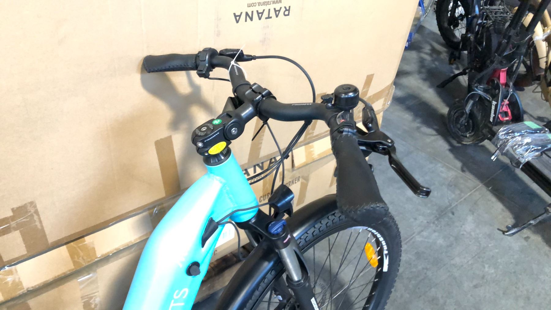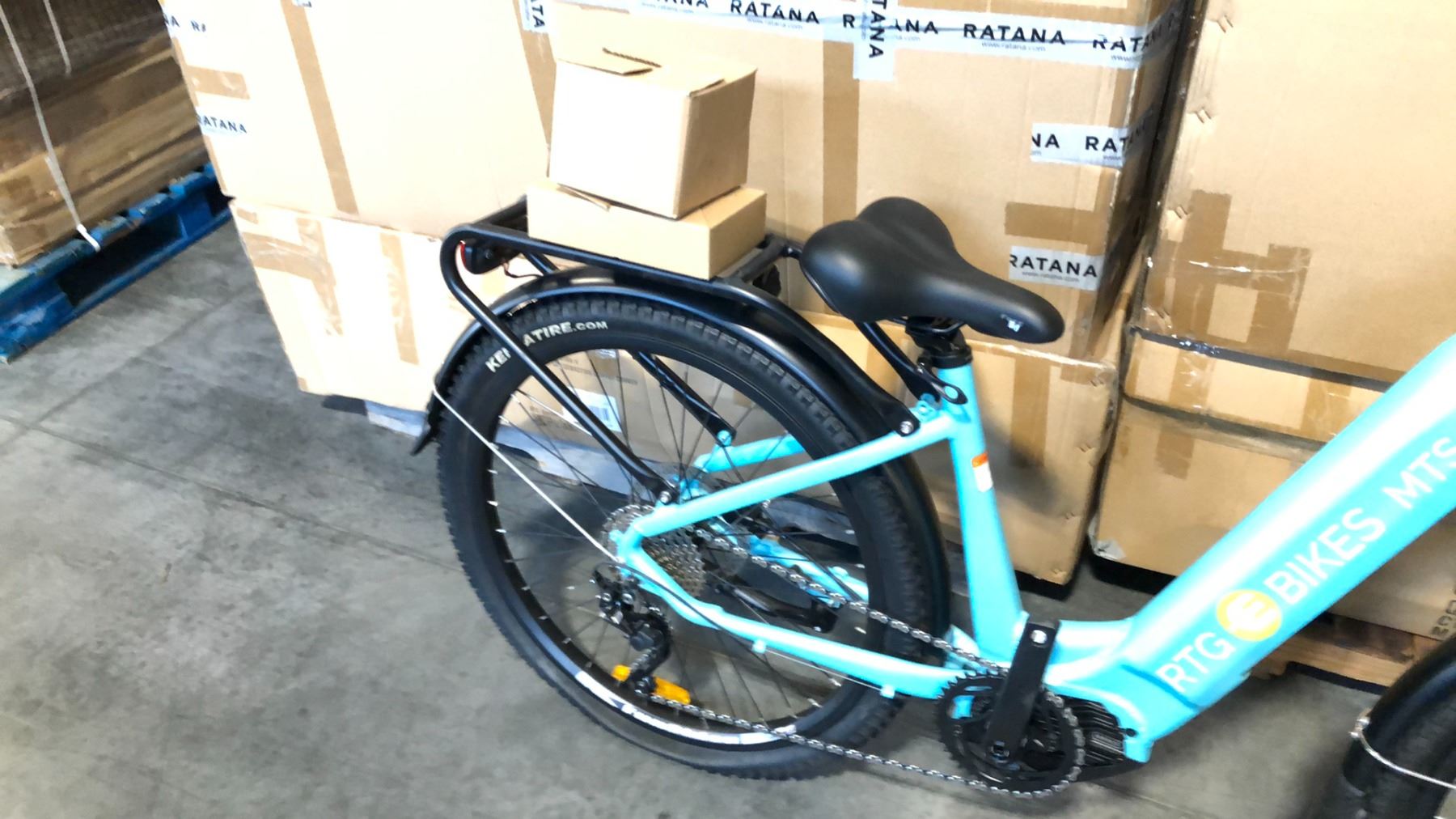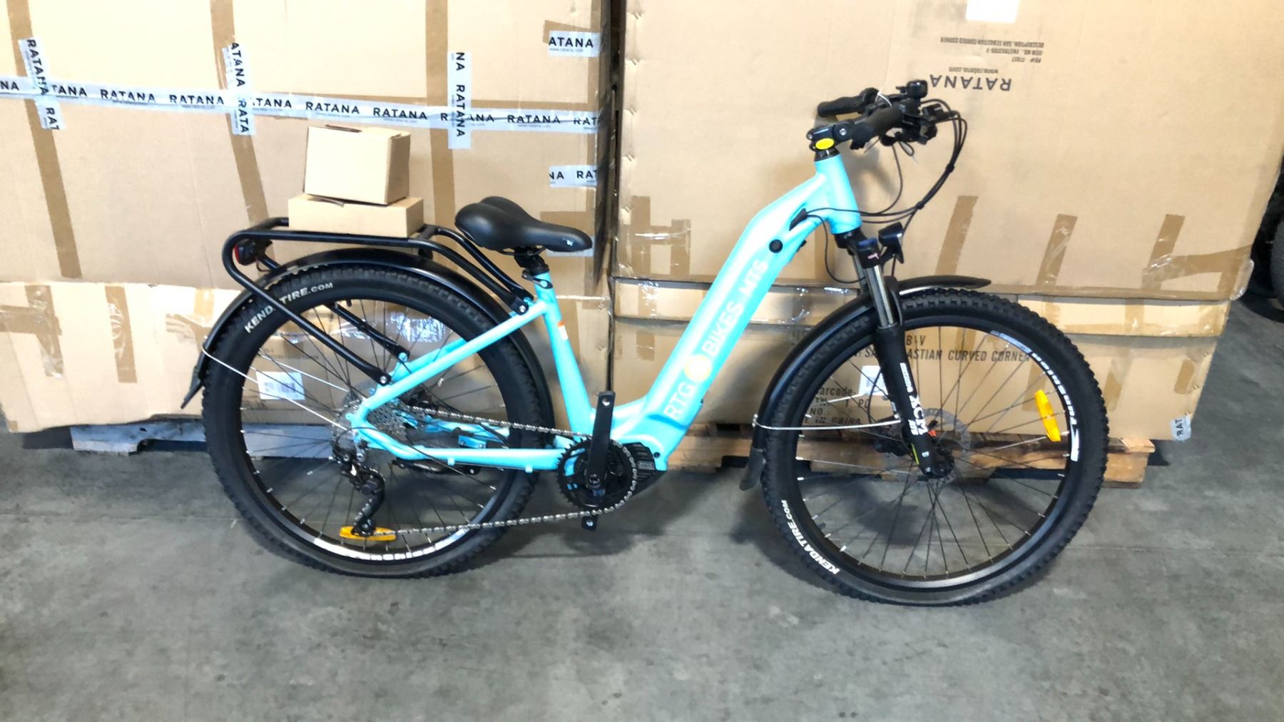 LIGHT BLUE MTS MAX 10-SPEED ELECTRIC BICYCLE WITH CHARGER, KEYS AND PEDALS (IN BOX) WITH BATTERY*