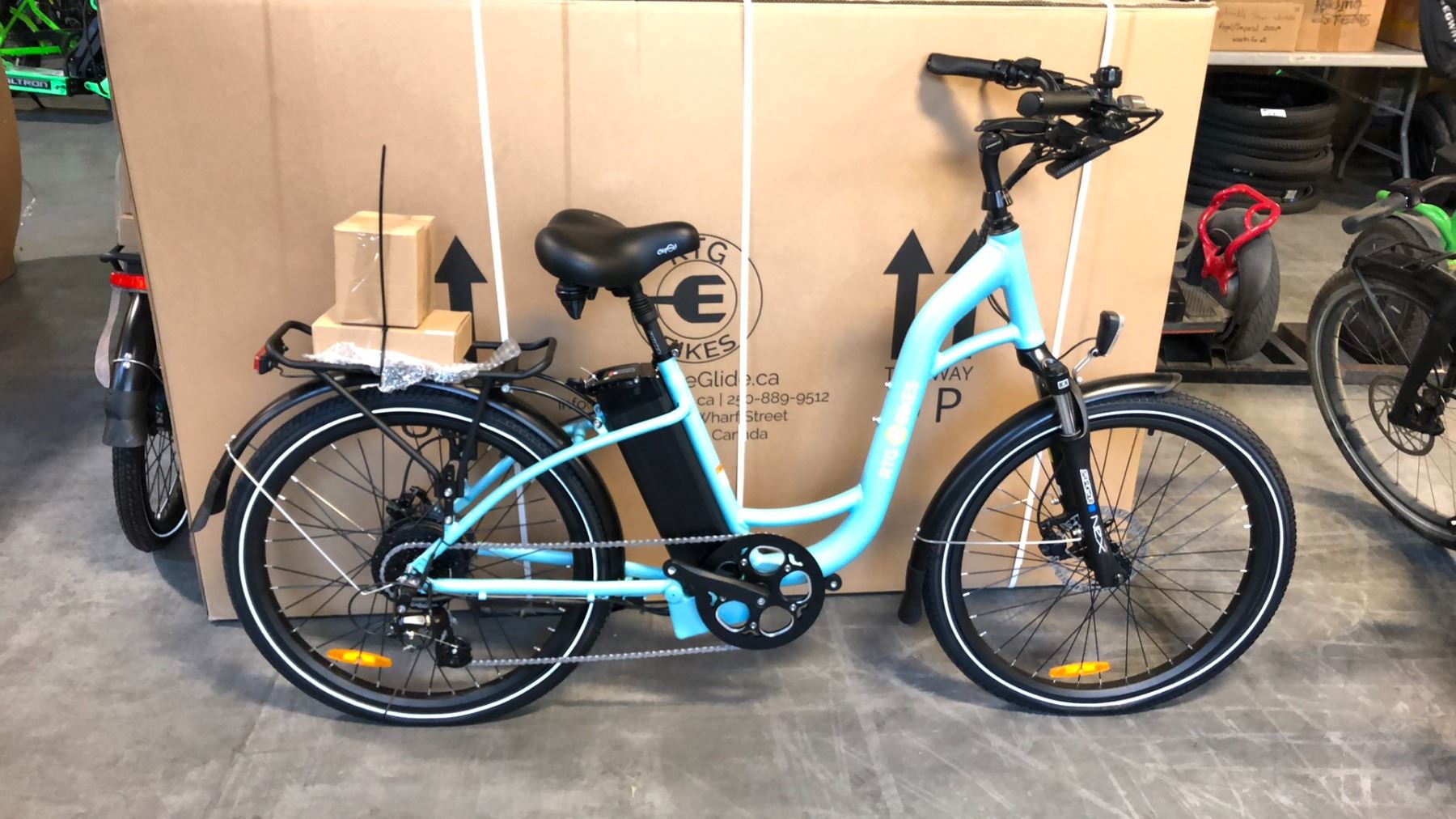 LIGHT BLUE RTG REGAL FRONT SUSPENSION 8-SPEED ELECTRIC BIKE