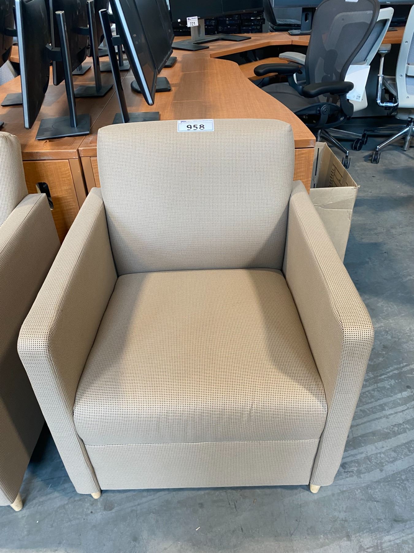 LIGHT BROWN FABRIC CLUB ARM CHAIR