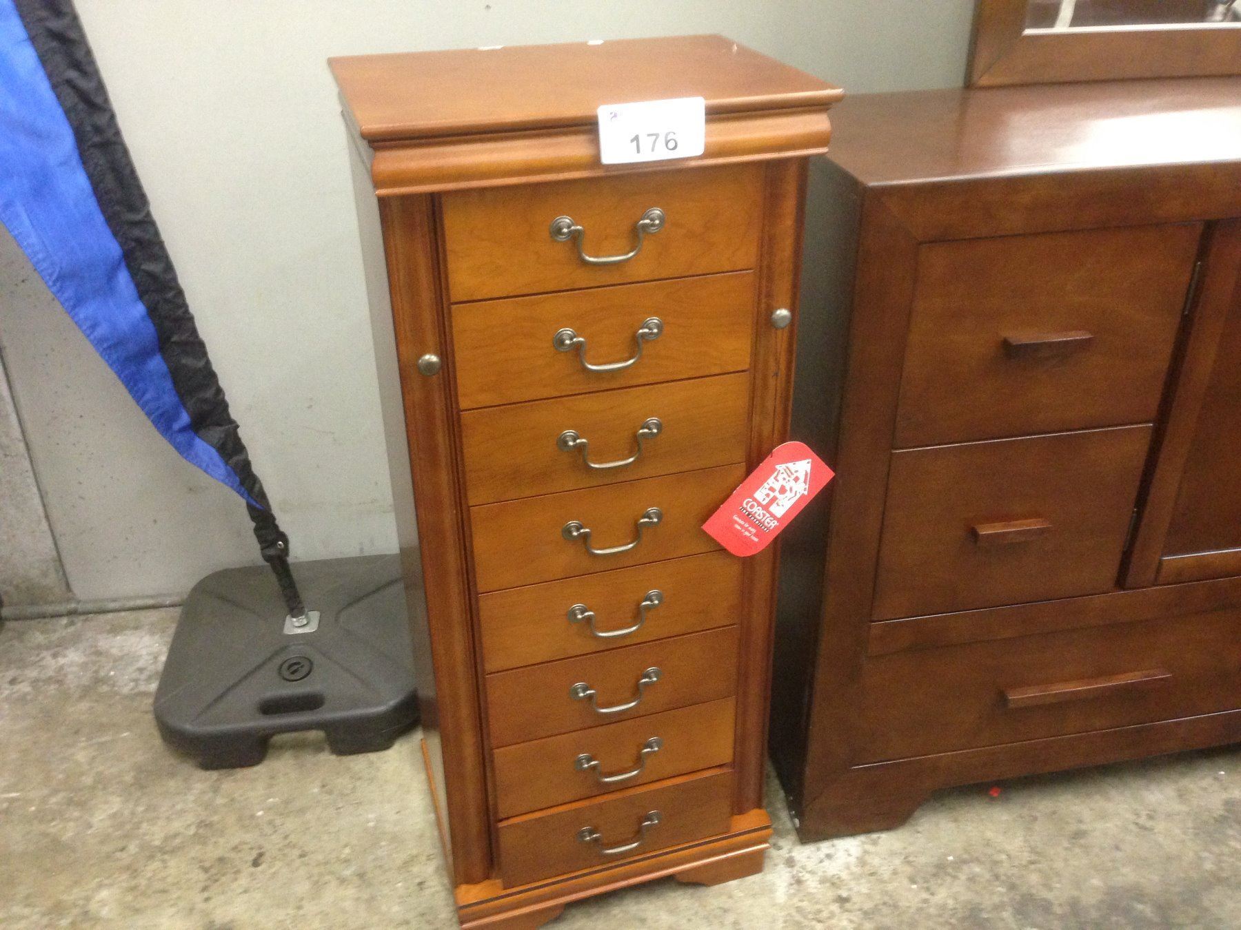 LIGHT CHERRY WOOD 4' TALL 8 DRAWER JEWELLERY WITH 2 SIDE DOORS