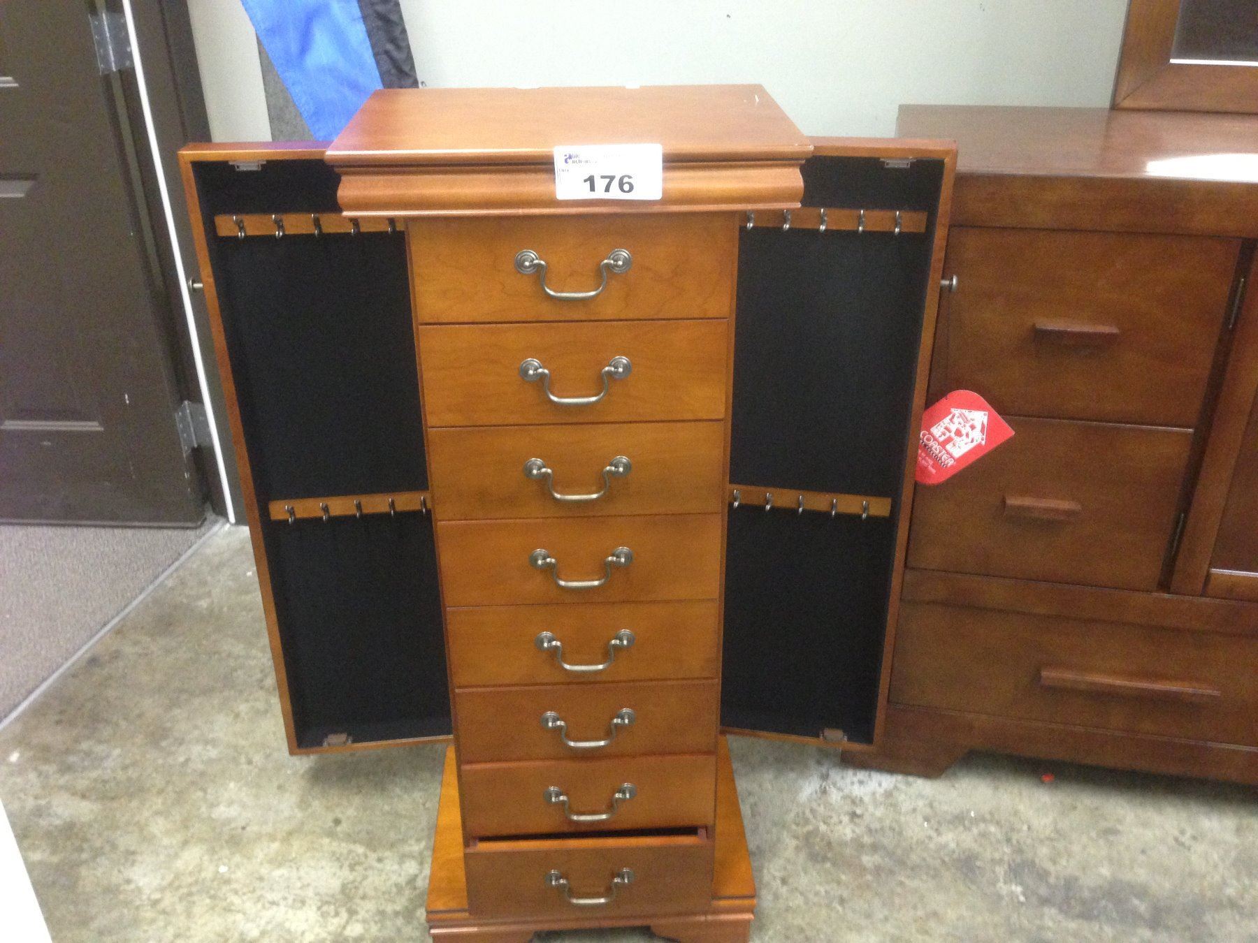 LIGHT CHERRY WOOD 4' TALL 8 DRAWER JEWELLERY WITH 2 SIDE DOORS