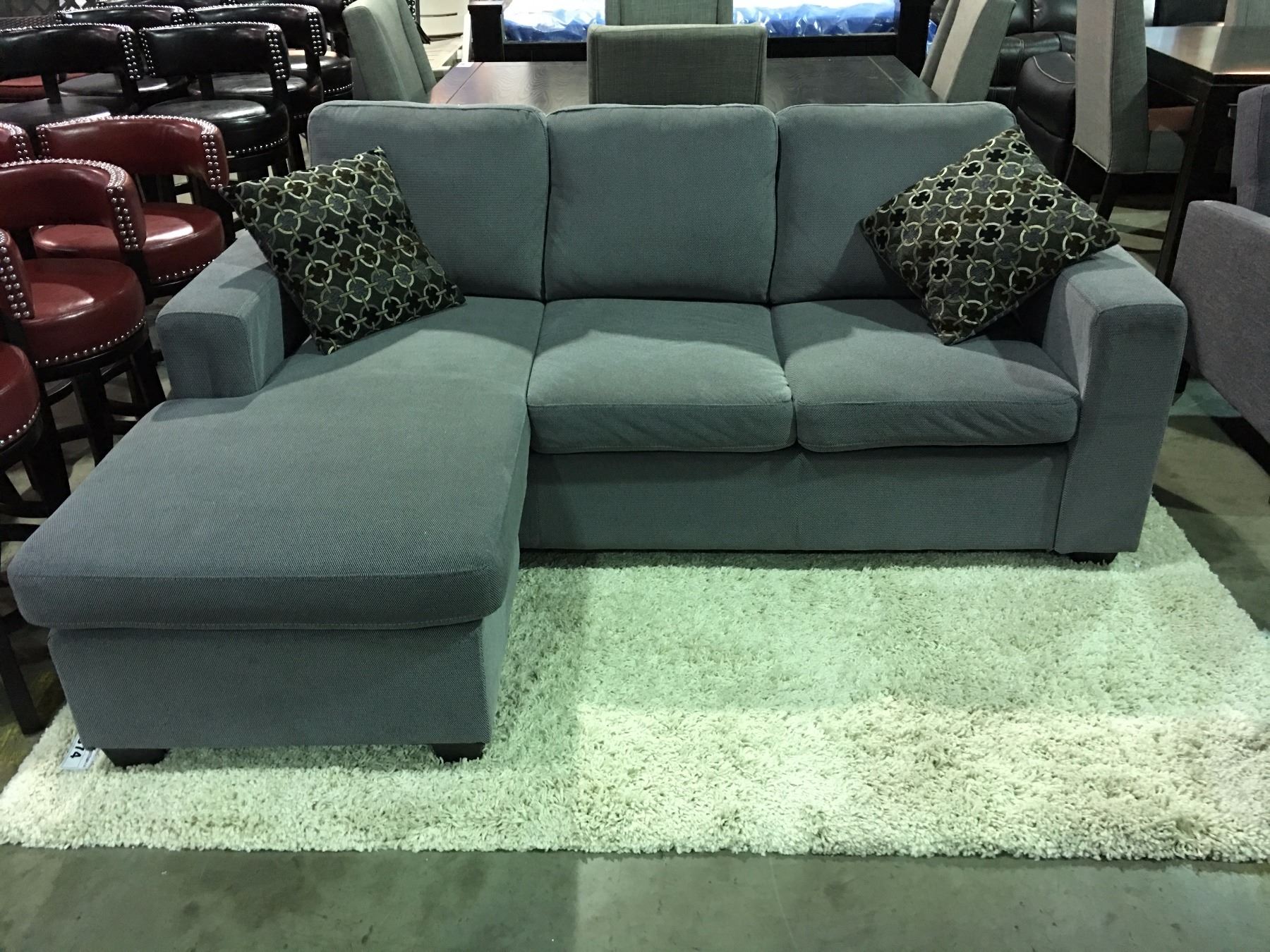 LIGHT GREY UPHOLSTERED SOFA WITH FOOTSTOOL LOUNGER & 2 THROW CUSHIONS