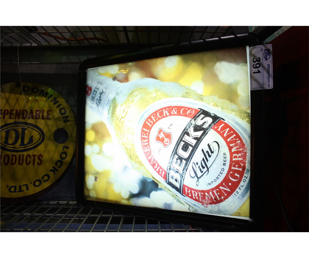 LIGHTED BECKS LIGHT BEER ADVERTISEMENT SIGN