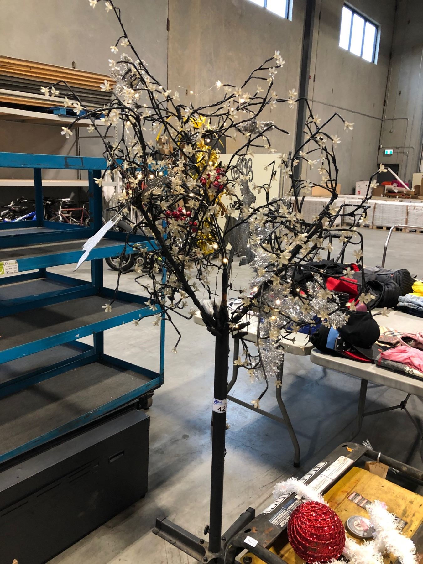 LIGHTED TWIG TREE WITH STAND AND DECOR WITH MISSING POWER SOURCE
