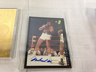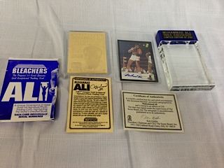 LIMITED EDITION MUHAMMAD ALI COLLECTOR SET '1964 KNOCK OUT' INCLUDES: MUHAMMAD ALI SIGNED CARD 102/300 AND 23K GOLD SCULPTURED TRADING CARD STAMPED SER. # 01087