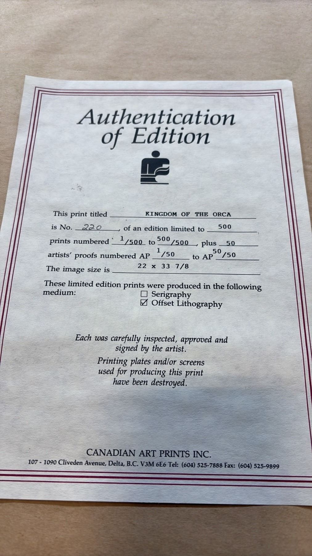 LIMITED EDITION PRINT 220/500 'KINGDOM OF THE ORCA' BY BRUCE MUIR