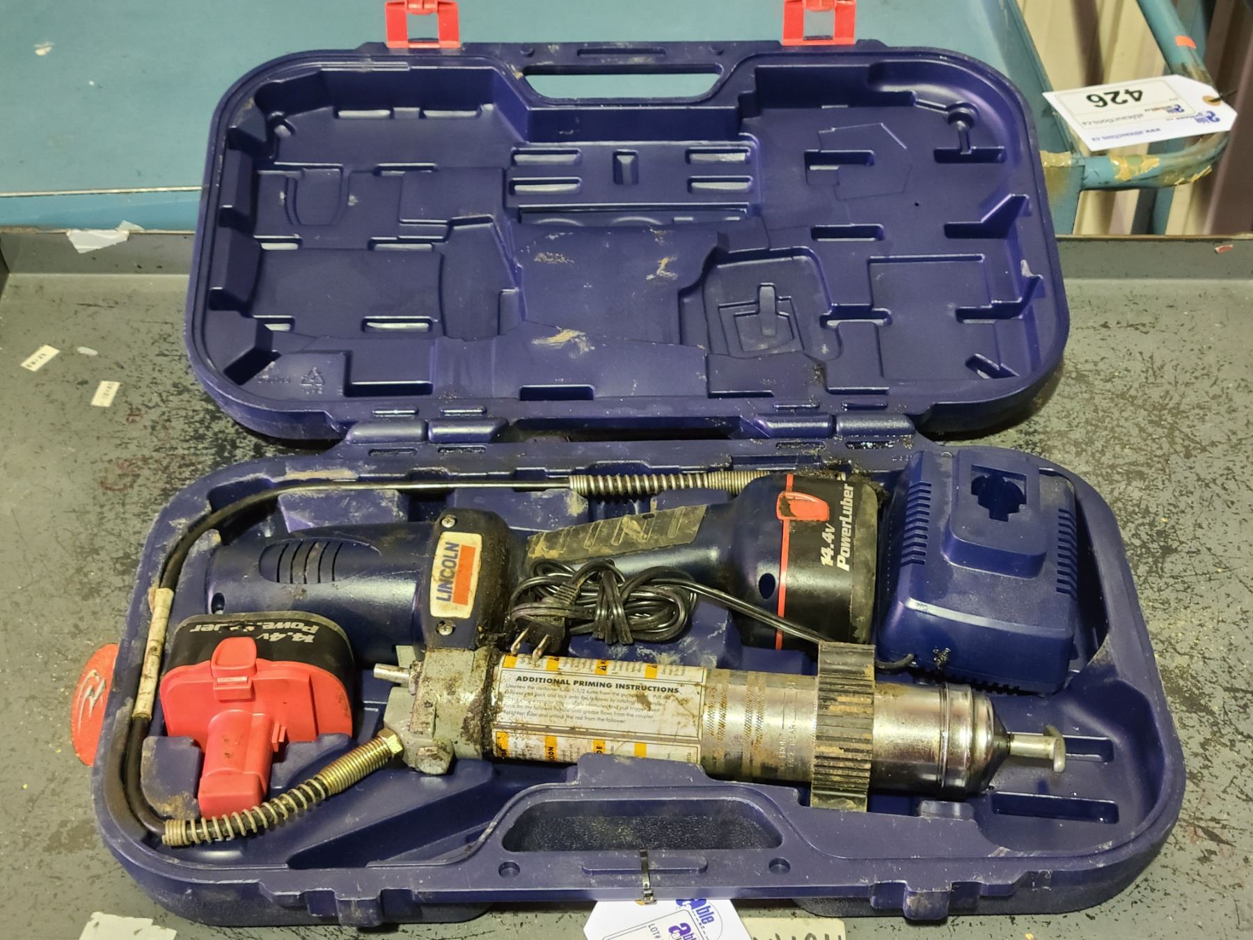 LINCOLN 14V POWER LUBER WITH 2 BATTERIES, CHARGER AND HARD CARRY CASE