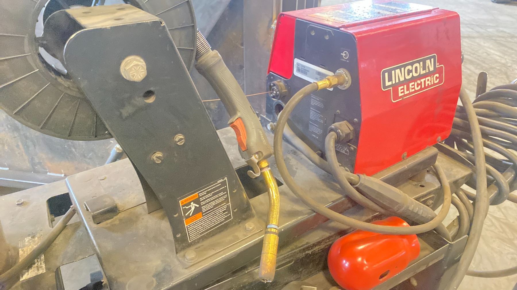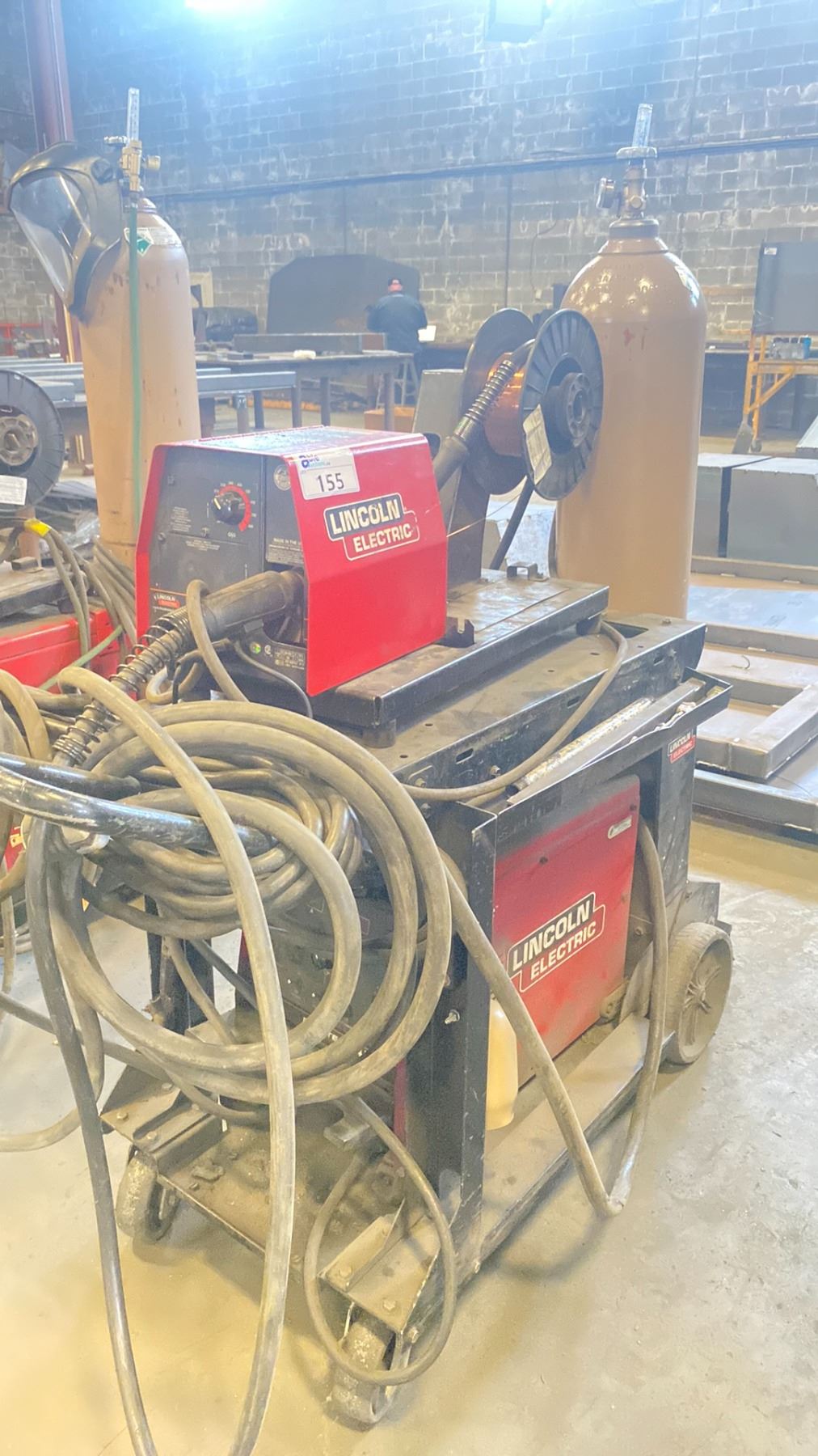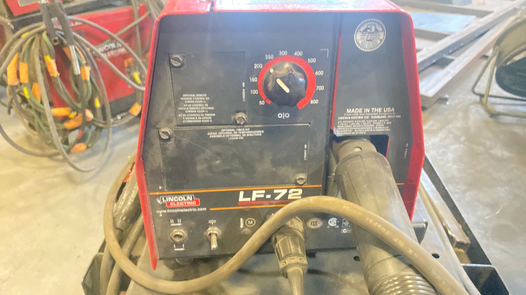 LINCOLN ELECTRIC FLEXTEC 450 WELDING MACHINE W/ LINCOLN ELECTRIC LF-72 WIRE FEED MIG WELDER WITH MOBILE WELDERS CART & TANK * TANK LEASED, CONTENTS ONLY *