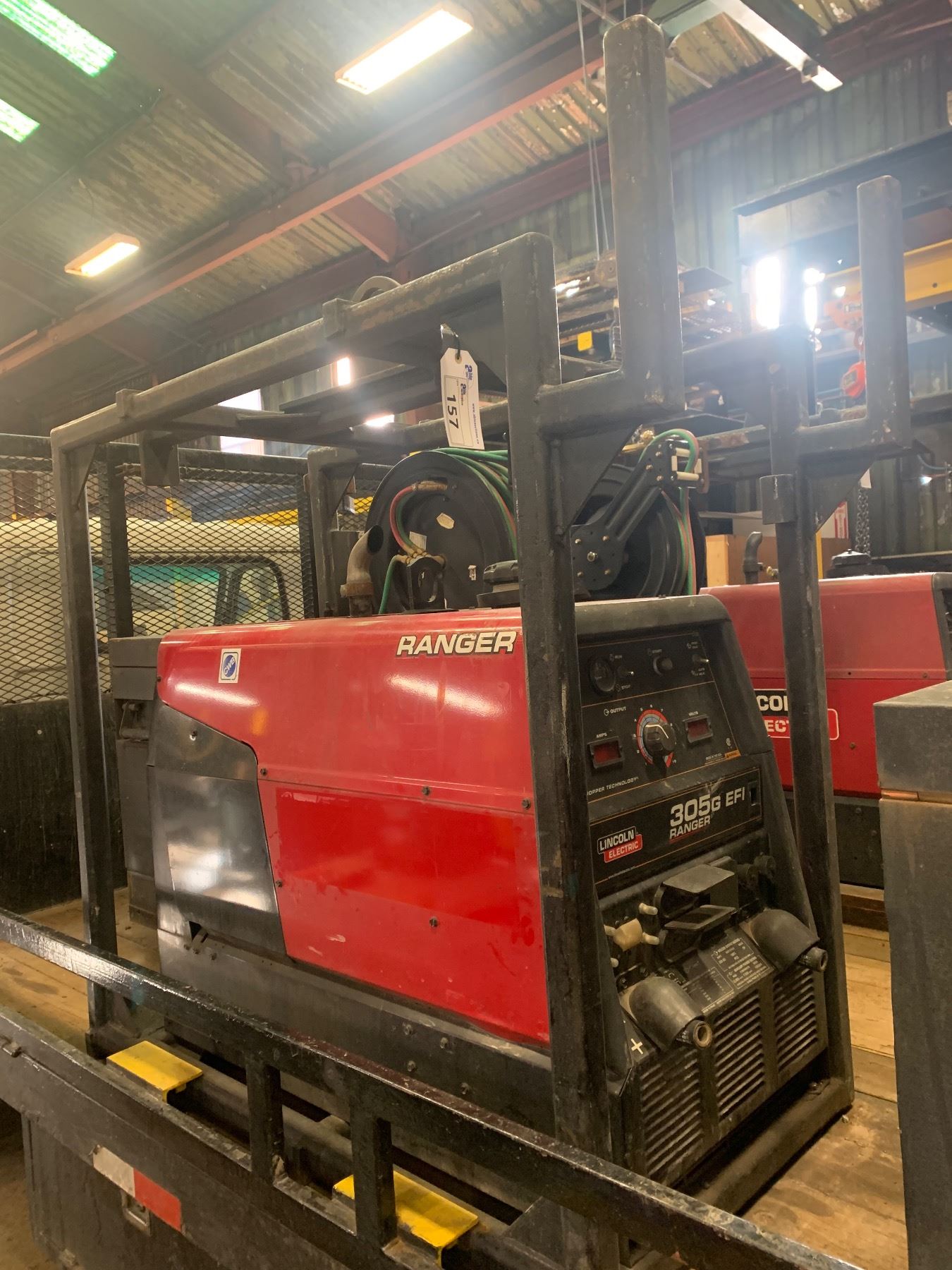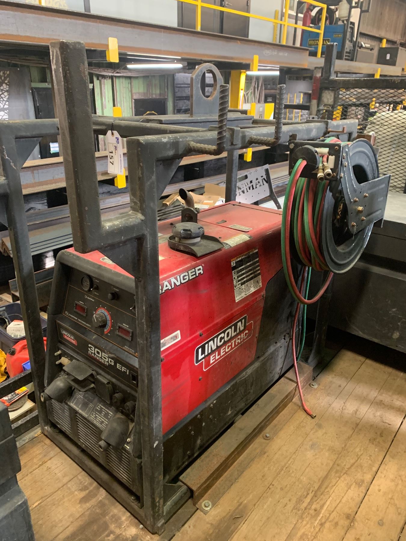 LINCOLN RANGER 305G EFI GAS PORTABLE WELDER, C/W PROTECTIVE CAGE, OXY/ACY HOSE & HOSE REEL