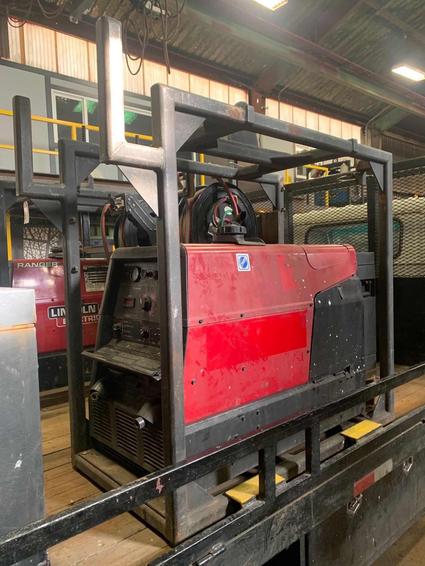 LINCOLN RANGER 305G EFI GAS PORTABLE WELDER, C/W PROTECTIVE CAGE, OXY/ACY HOSE & HOSE REEL