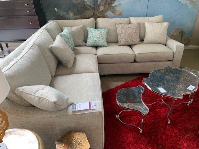 LINEN FABRIC 5 SEAT PILLOW BACK SECTIONAL SOFA WITH THROW PILLOWS