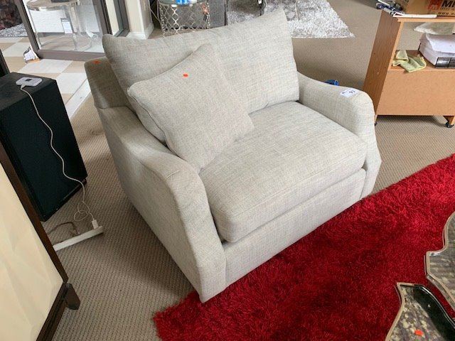 LINEN FABRIC OVERSIZED PILLOW BACK ARM CHAIR WITH THROW PILLOW