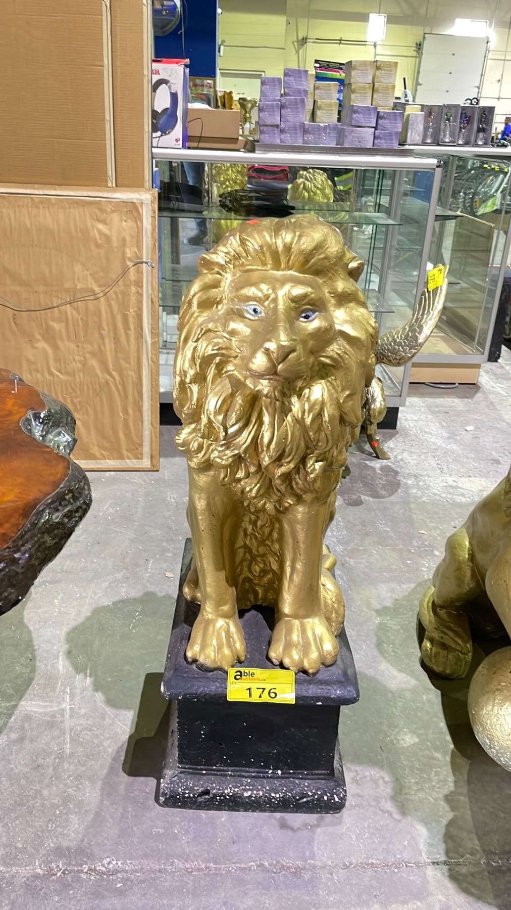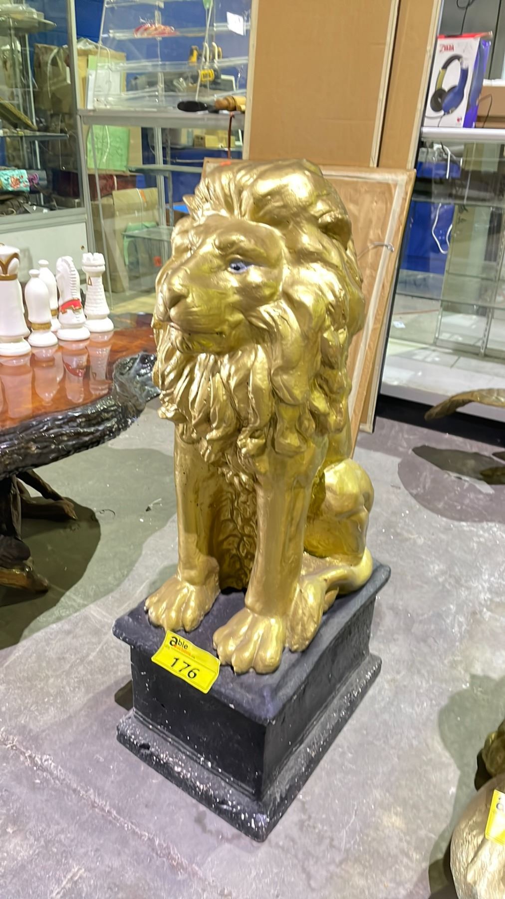 LION ON PEDESTAL SCULPTURE 36" TALL