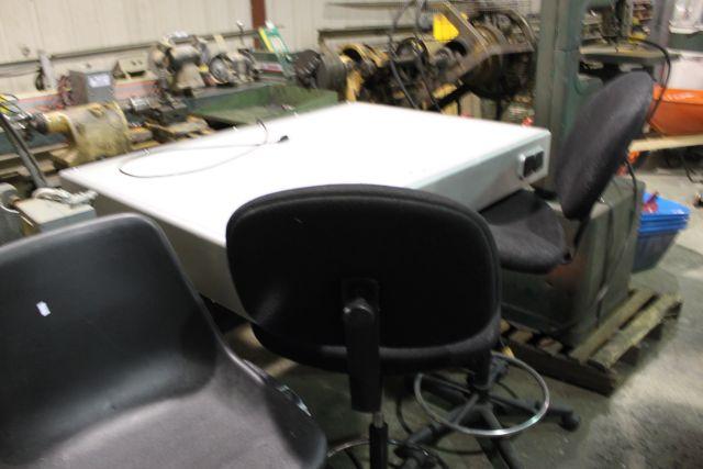 LIT WORK TABLE & DRAFTING STOOLS