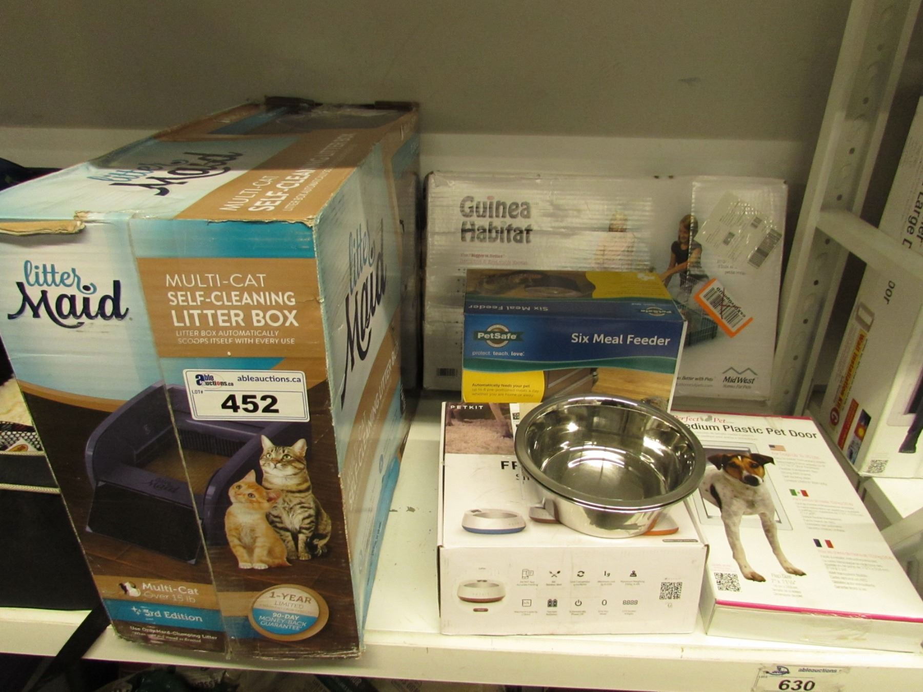 LITTERMAID MULTI-CAT SELF CLEANING LITTER BOX, GUINEA HABITAT CAGE, PETSAFE SIX MEAL FEEDER, PET DISHES, SMART FEED BOWL, MEDIUM PLASTIC PET DOOR