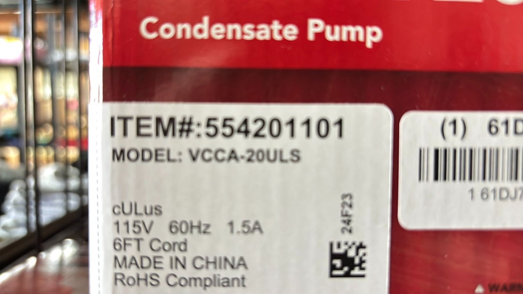 LITTLE GIANT VCCA-20ULS LOW PROFILE CONDENSATE PUMP *IN BOX*
