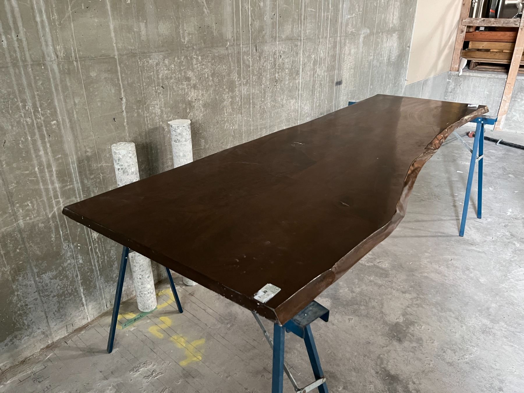 LIVE EDGE COUNTERTOP. 98"X 36"X 1.5" THICK. COULD USE REFINISHING BUT NOT ABSOLUTELY NECESSARY.