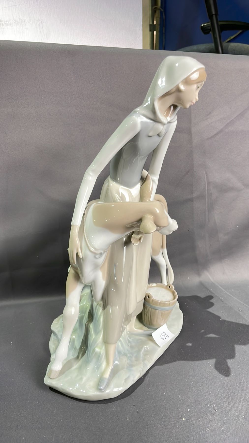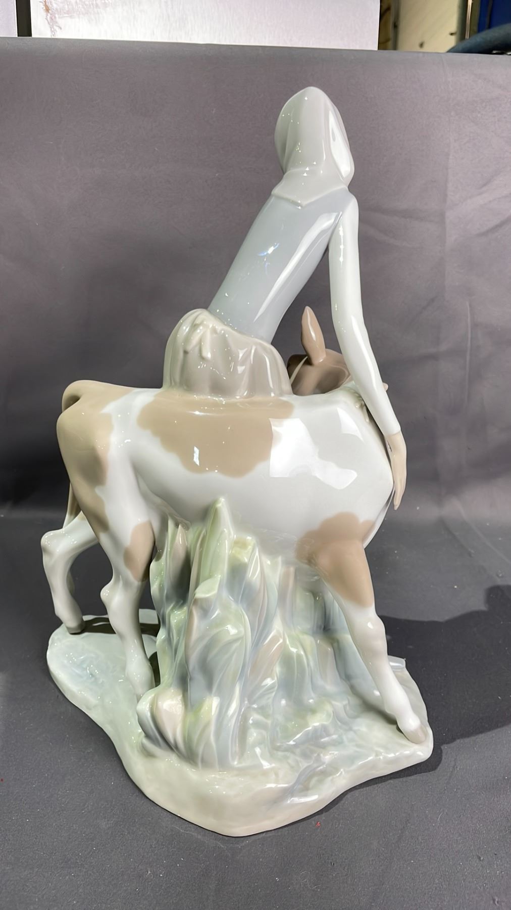 LLADRO MILK MAID & COW FIGURINE 13" TALL