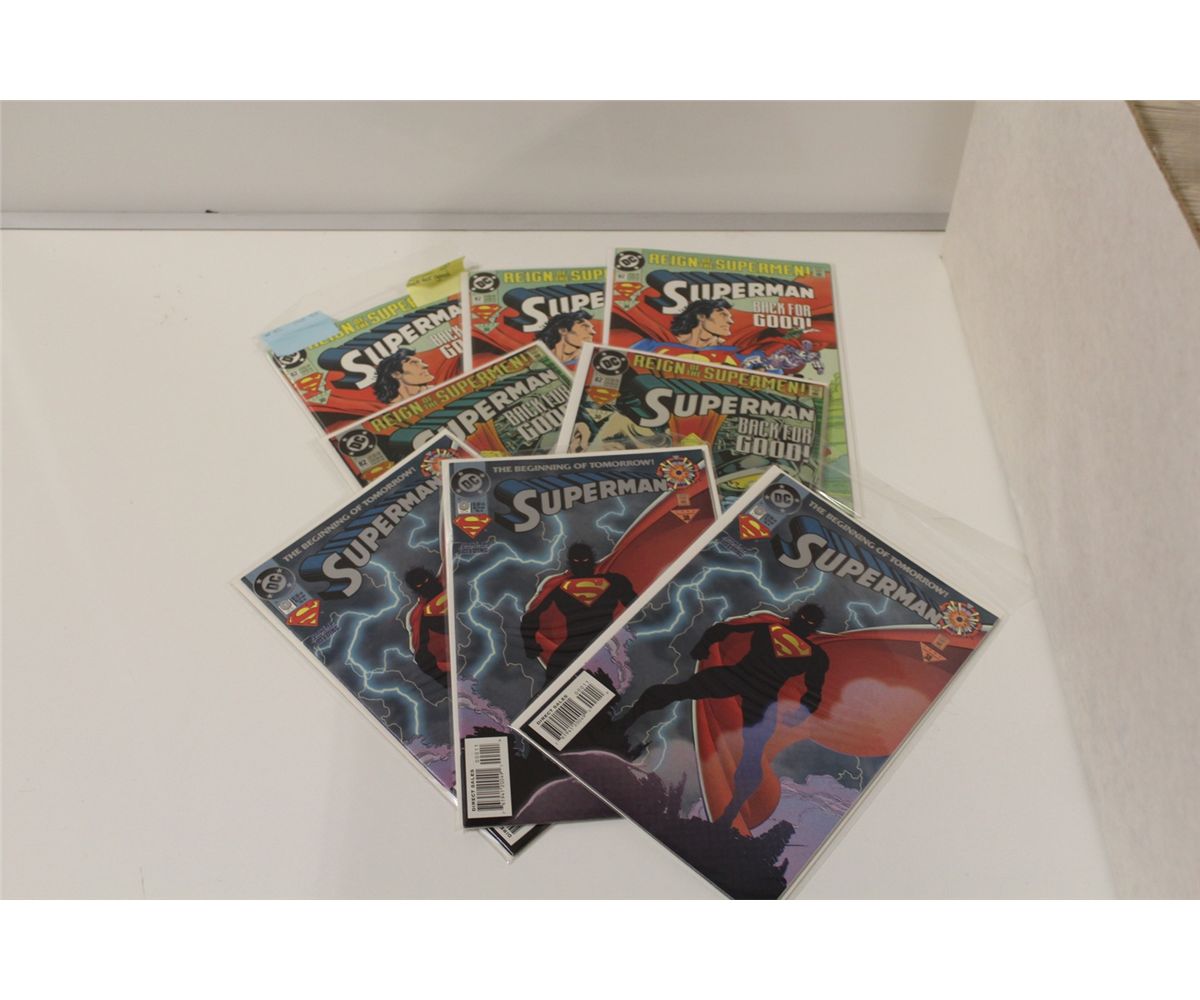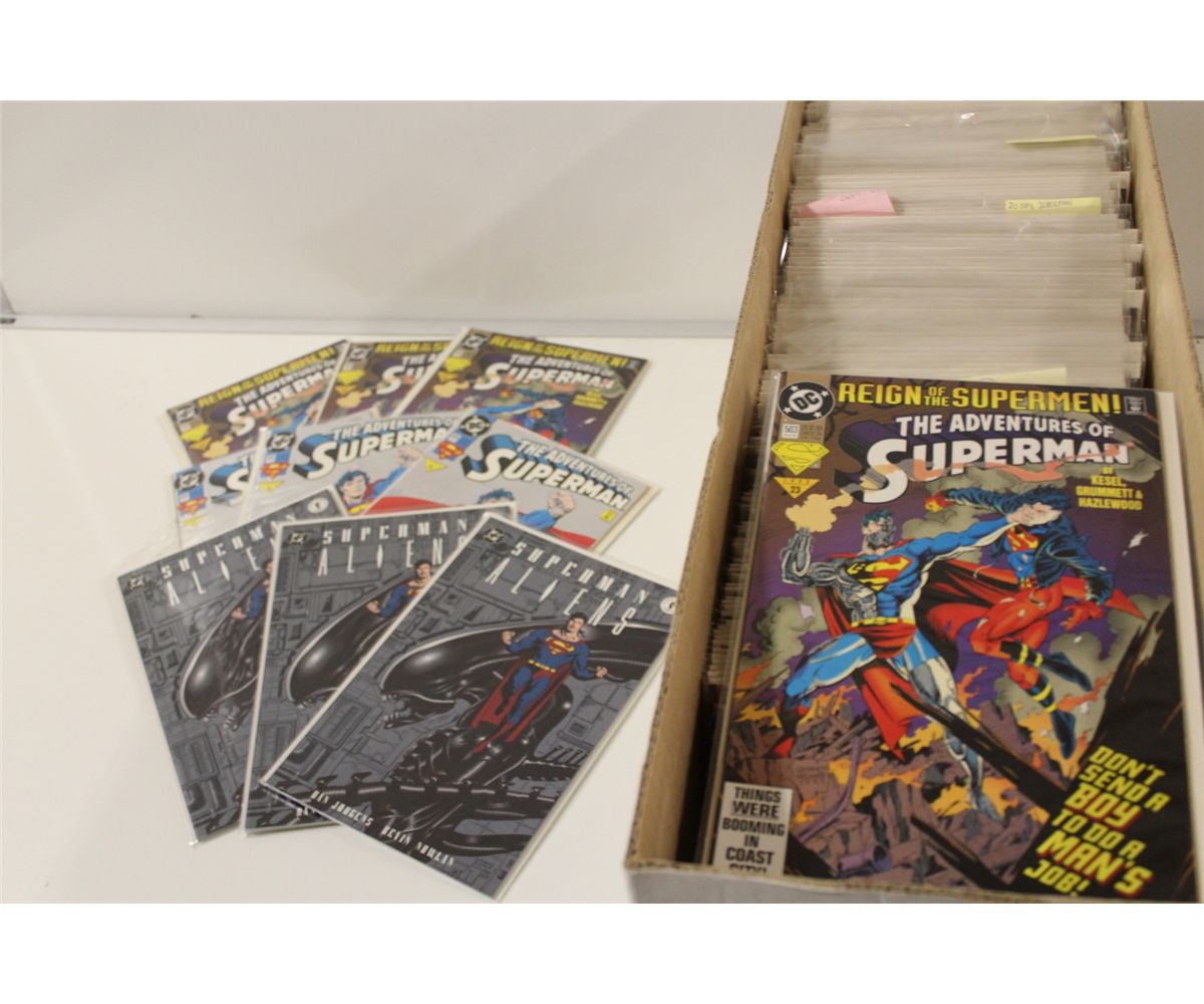 LONG BOX OF ASSORTED 90'S SUPERMAN COMICS, MULTIPLE COPIES OF EACH