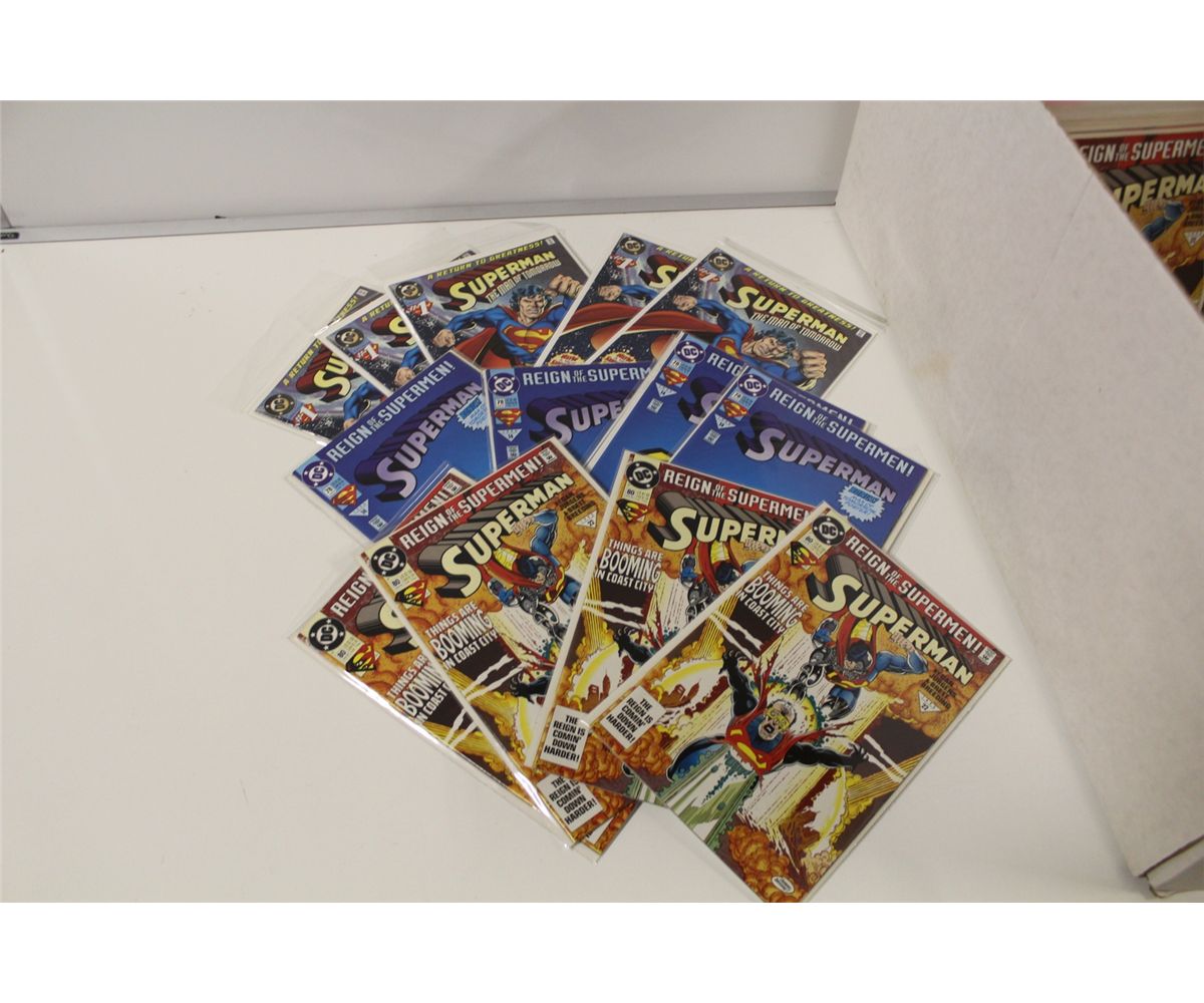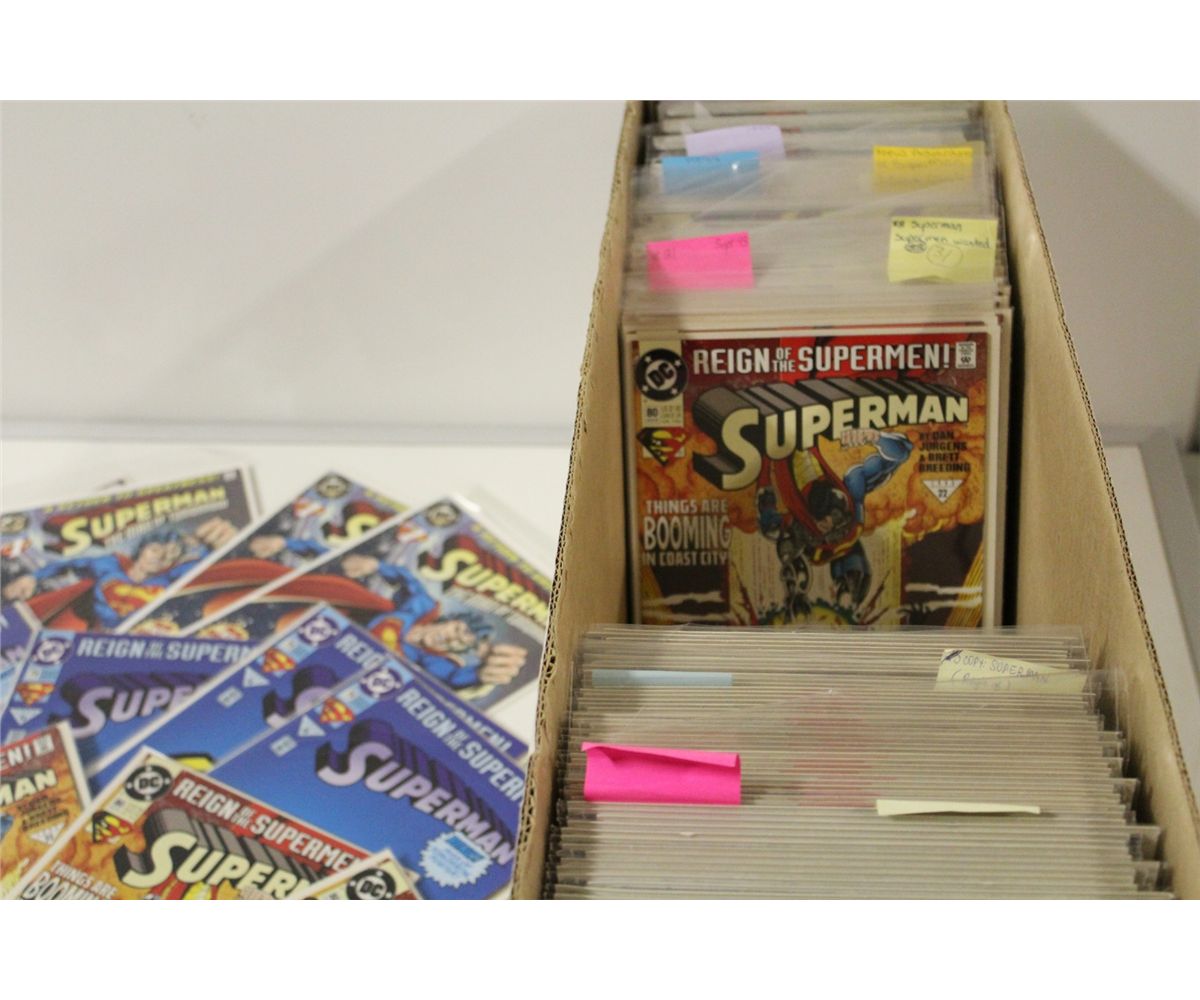 LONG BOX OF ASSORTED 90'S SUPERMAN COMICS, MULTIPLE COPIES OF EACH
