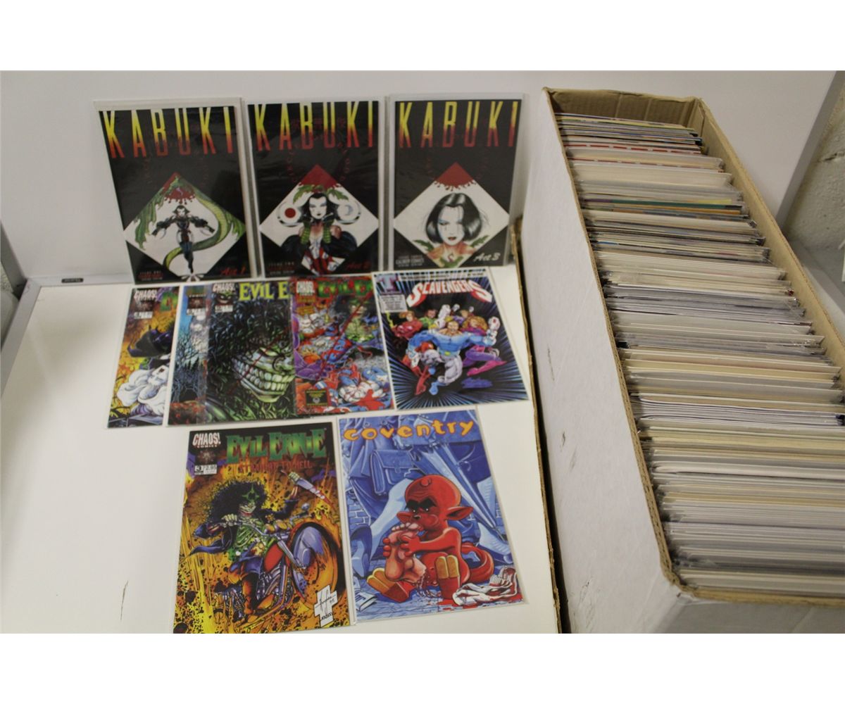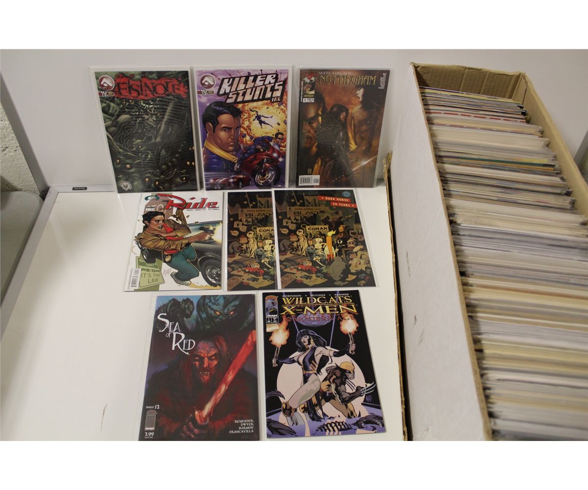 LONG BOX OF MIXED TITLE BACK ISSUES. 80'S AND UP, MANY #'1. HIGH GRADE AVERAGE