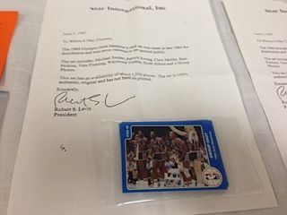LOT CONTAINING 2 LMT.ED.  1984 LOS ANGELES GOLD MEDAL COLLECTOR SETS FEATURING: JORDAN, EWING AND OTHERS, PLUS A 90'S DYNASTY LMT. ED. CHICAGO BULLS COLLECTOR CARD SER. # 11264/15000