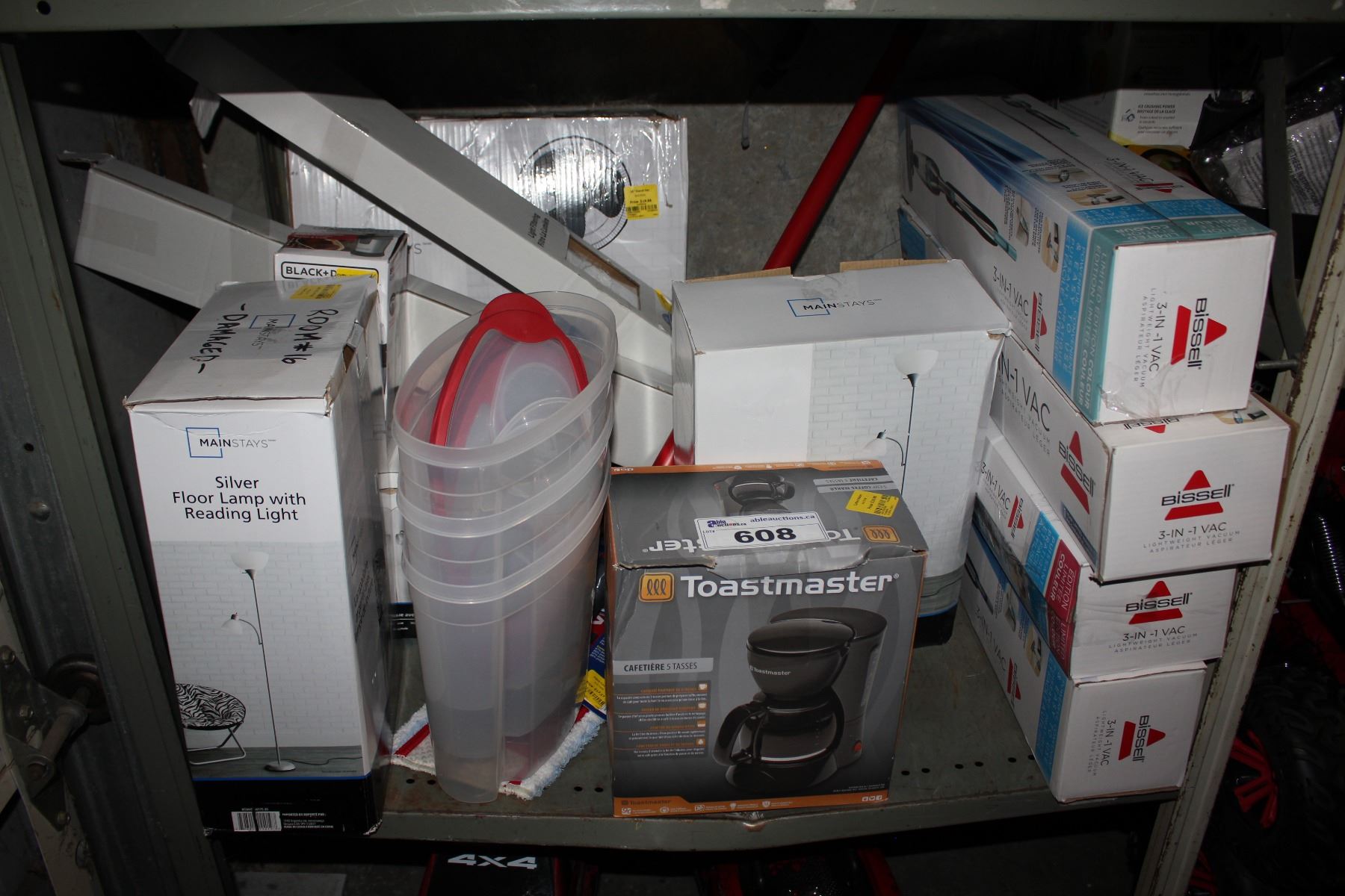 LOT INCLUDING 4 BISSELL 3-IN-1 VACUUMS, TOASTMASTER COFFEE MAKER, MAINSTAYS FLOOR LAMPS AND MORE