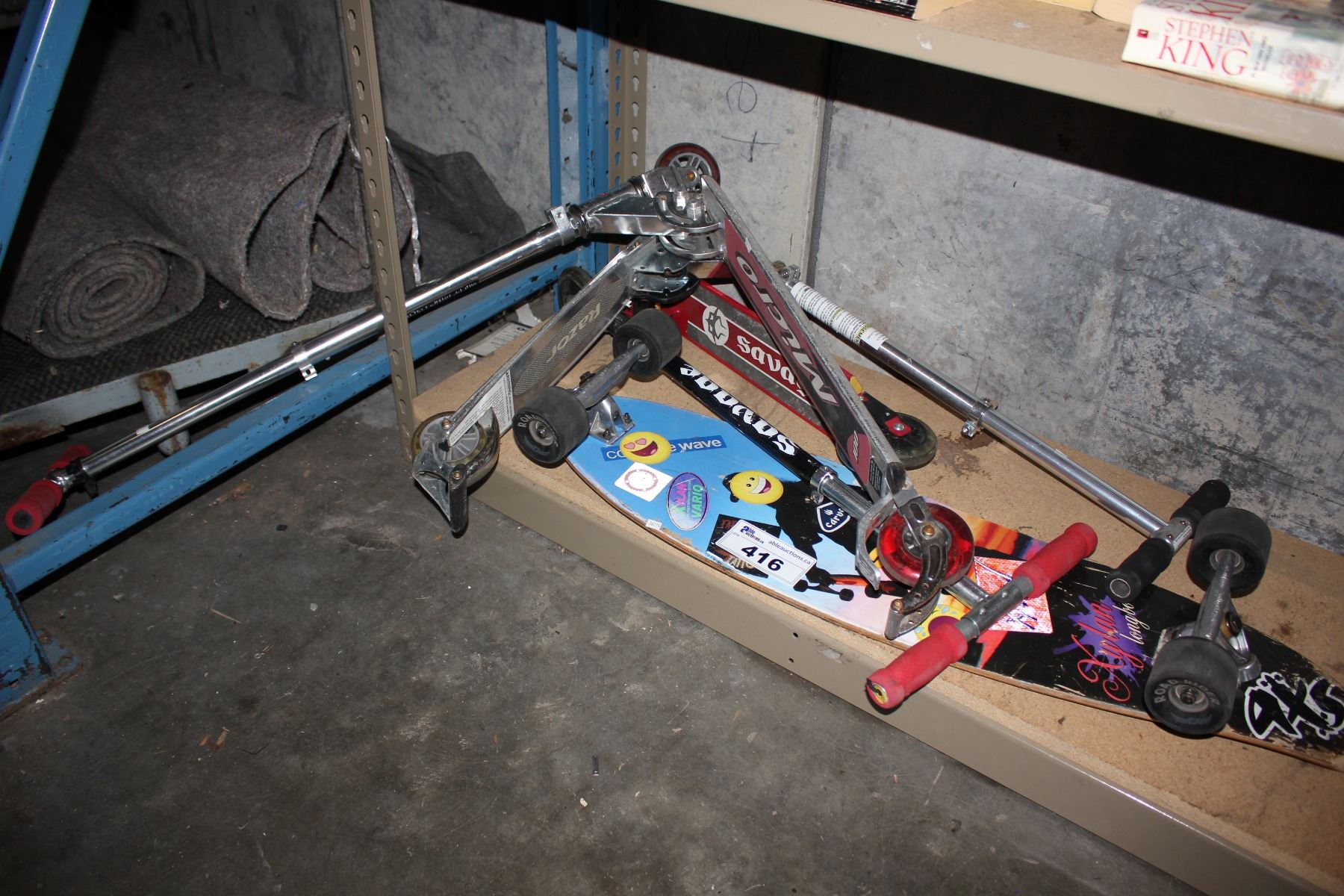 LOT INCLUDING ASSORTED SCOOTERS AND LONGBOARD