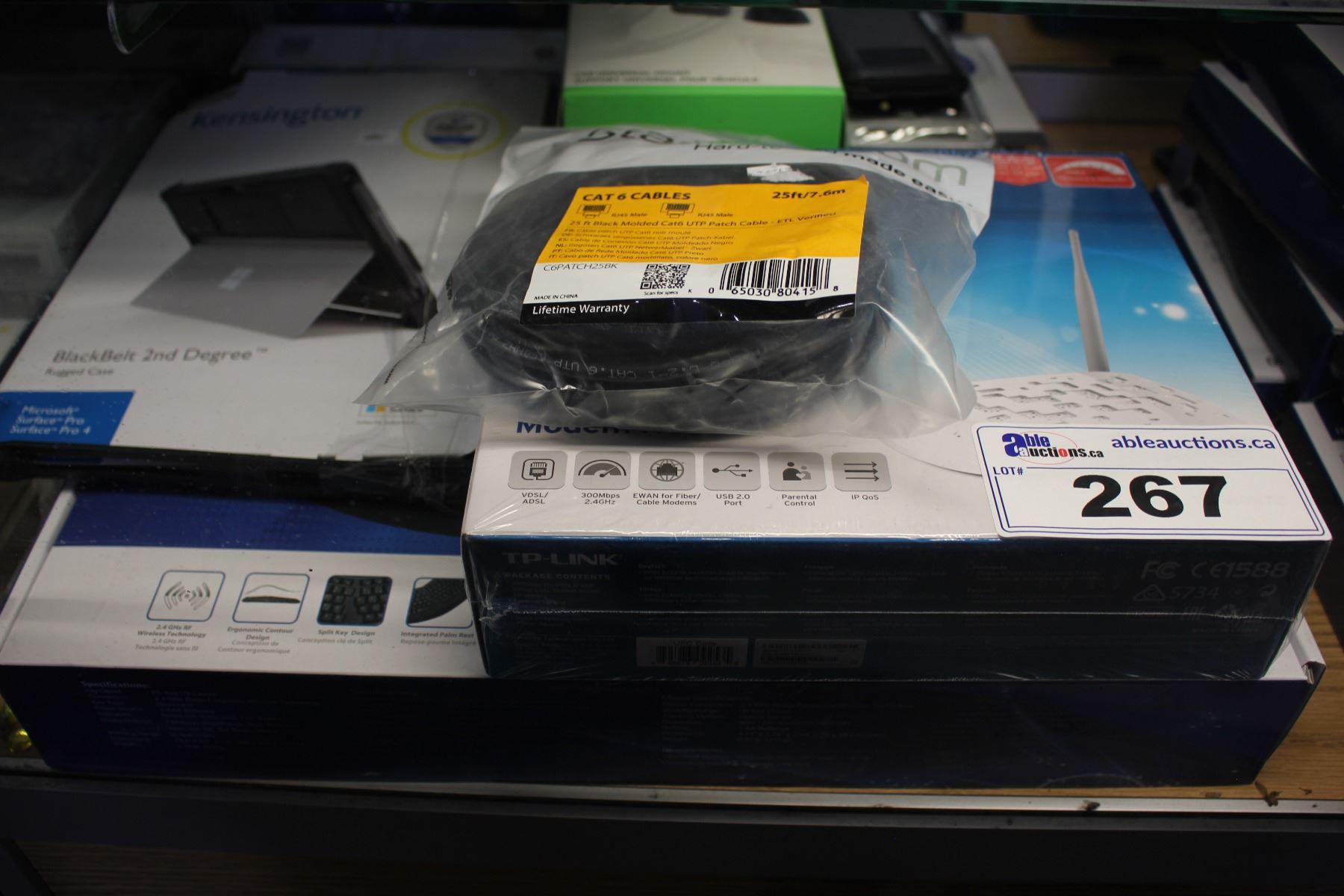 LOT INCLUDING KEYBOARD, TP-LINK ROUTER, MICROSOFT SURFACE PRO CASE, AND MORE