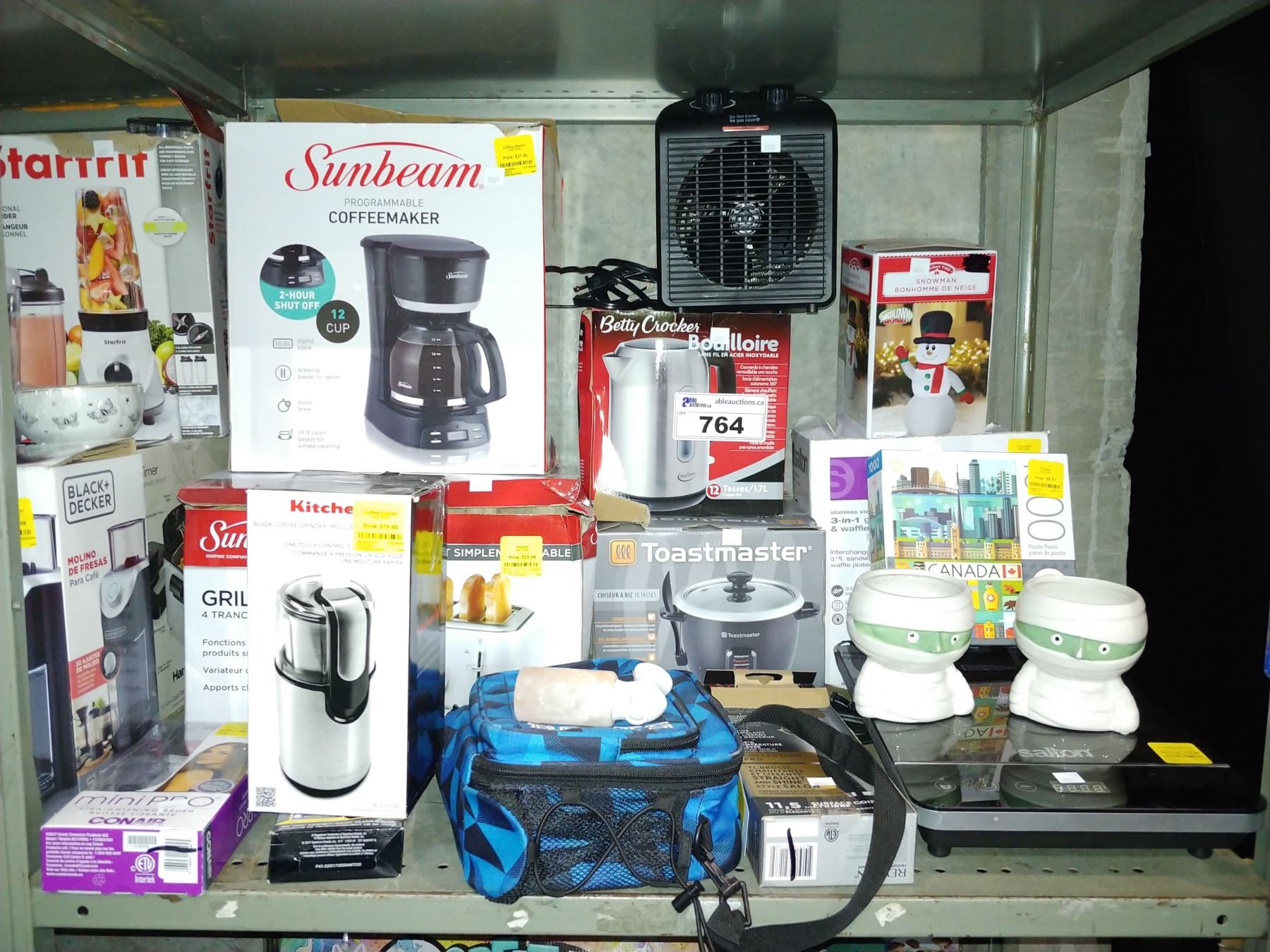 LOT INCLUDING SUNBEAM COFFEE MAKER & TOASTER, SALTON WAFFLE IRON & SCALE, CONAIR MINI STRAIGHTENING BRUSH AND MORE