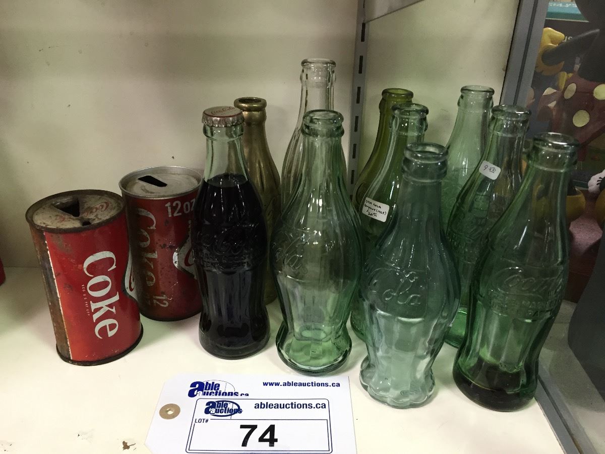 LOT OF 10 ASSORTED VINTAGE COCA-COLA BOTTLES & 2 CANS