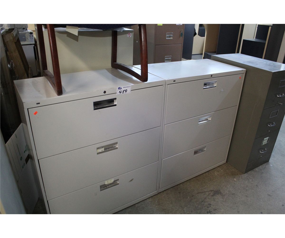 LOT OF 10 FILE CABINETS AND 6 BLUE ARMCHAIRS