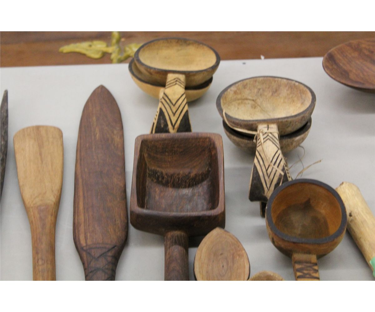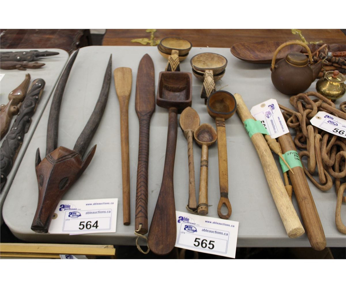 LOT OF 10 HAND CARVED WOODEN LADLES