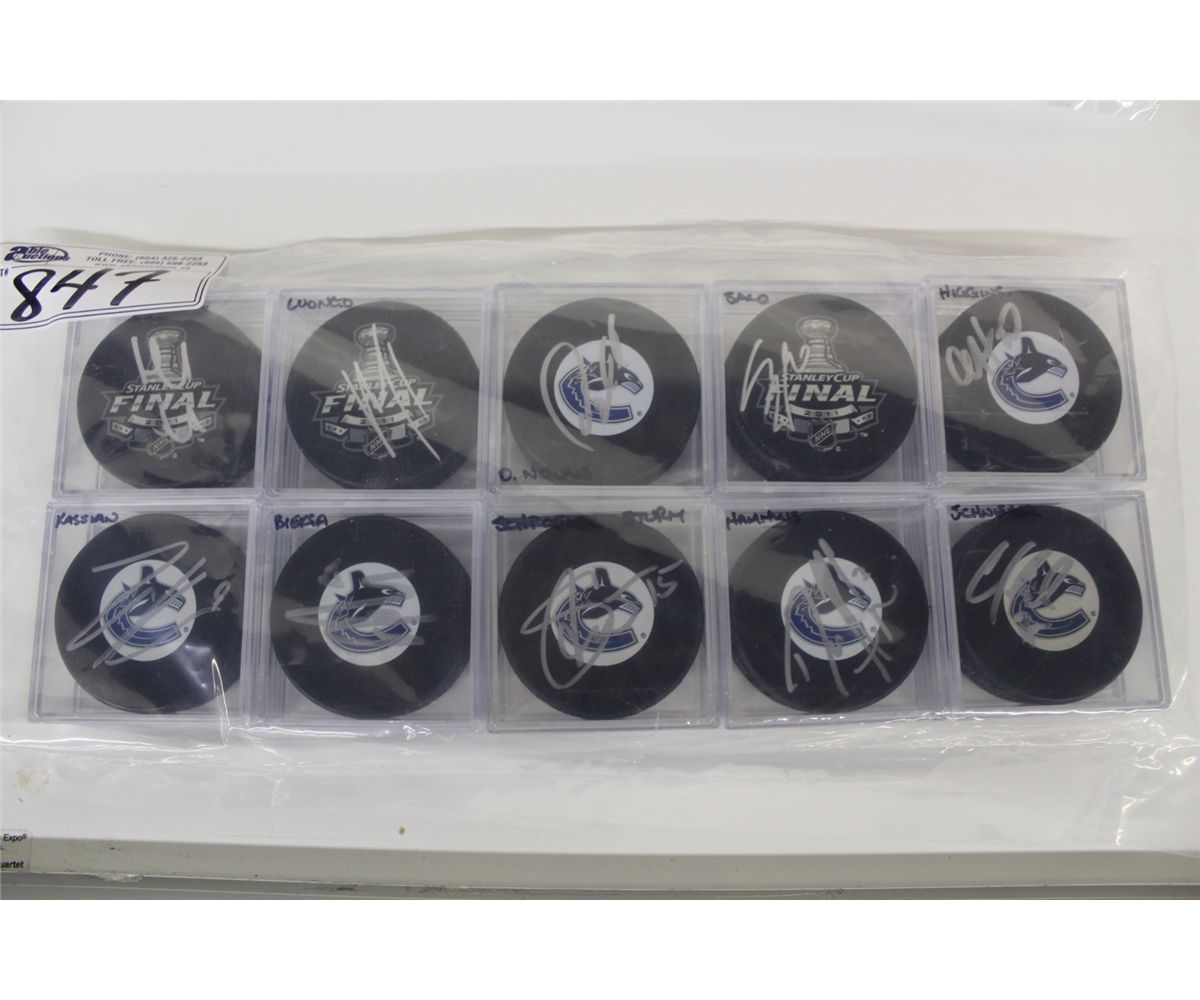 LOT OF 10 SIGNED NHL PUCKS-