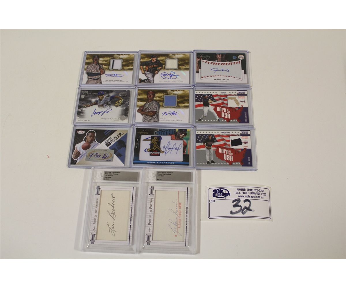 LOT OF 11 AUTHENTIC MLB GAME USED AND AUTOGRAPHED CARDS, INCLUDING: GARY SHEFFIELD, TOMMY JOSEPH AND MORE!