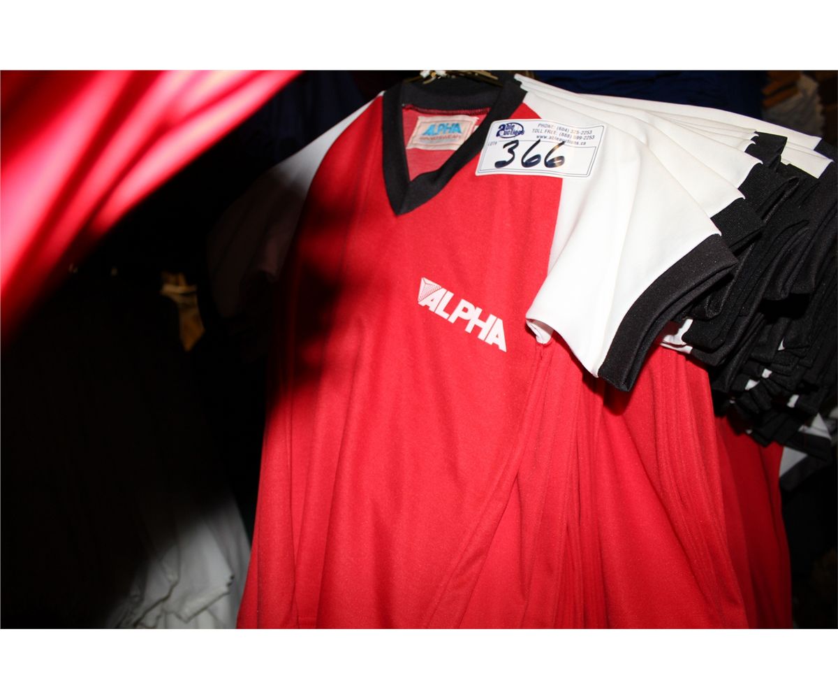 LOT OF 123 RED/WHITE/BLACK JUNIOR SOCCER JERSIES SOLD PER JERSEY, MUST TAKE ALL.