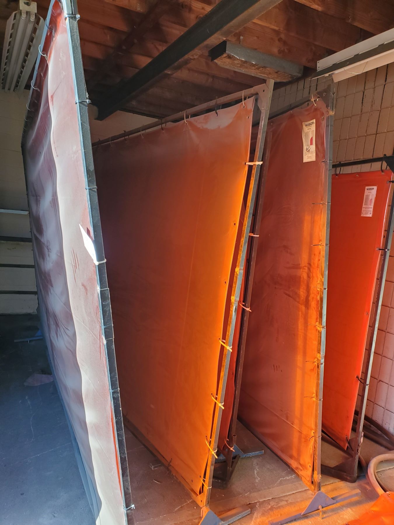 LOT OF 13 ASSORTED HEAVY DUTY WELDING CURTAINS, AND FRAMES