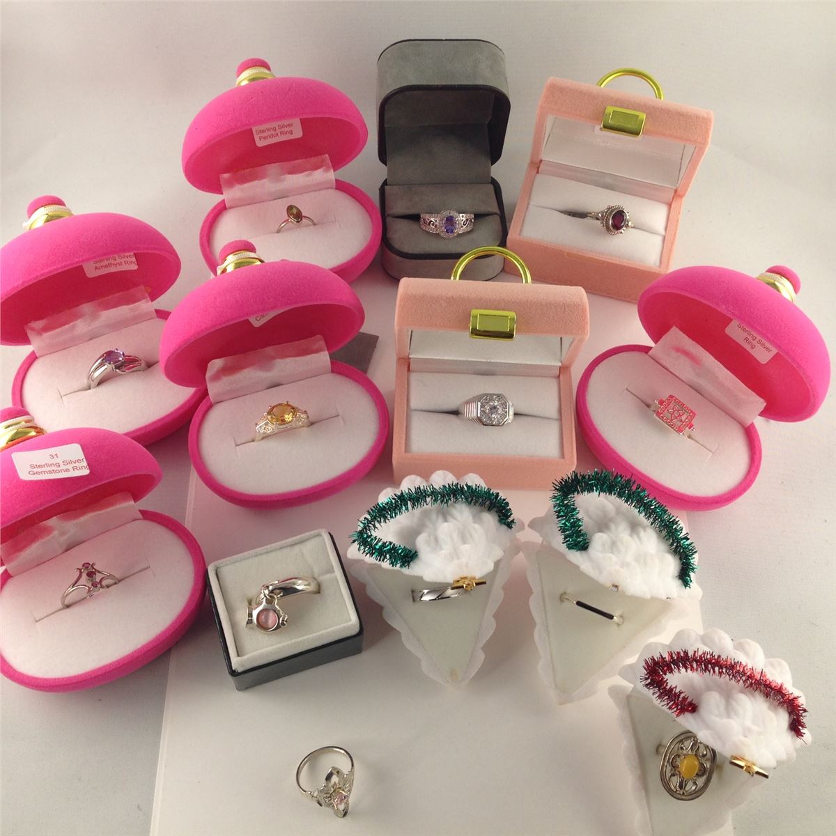 LOT OF 13 STERLING SILVER RINGS, SOME INCLUDING: TANZANITE, AMETHYST, CITRINE, PERIDOT AND MORE! A CHOICE DEALERS LOT!