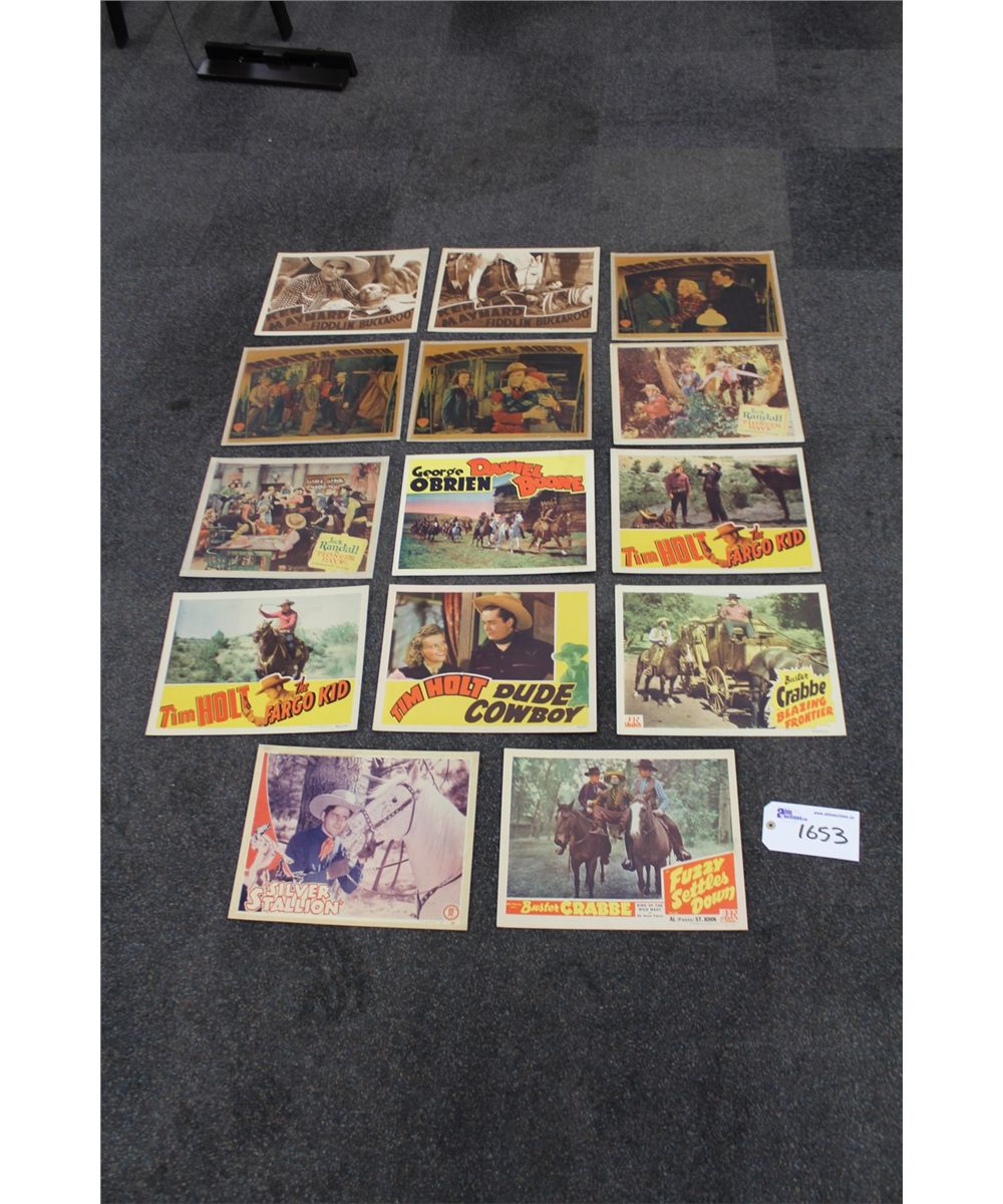 LOT OF 14 WESTERN LOBBY CARDS, VARIOUS TITLES INCL. KEN MAYNARD & BUSTER CRABBE