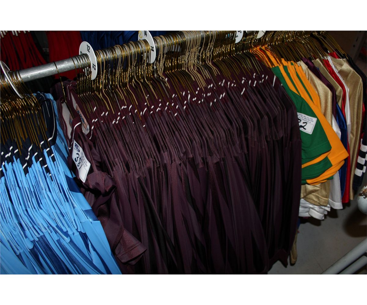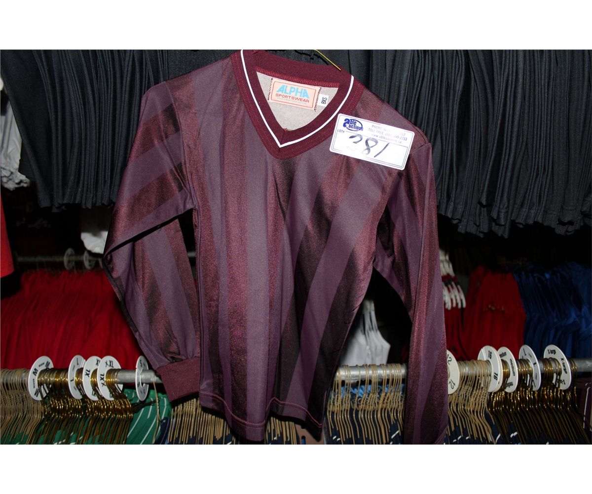 LOT OF 141 BURGANDY STRIPED SOCCER JERSIES SOLD PER JERSEY, MUST TAKE ALL.