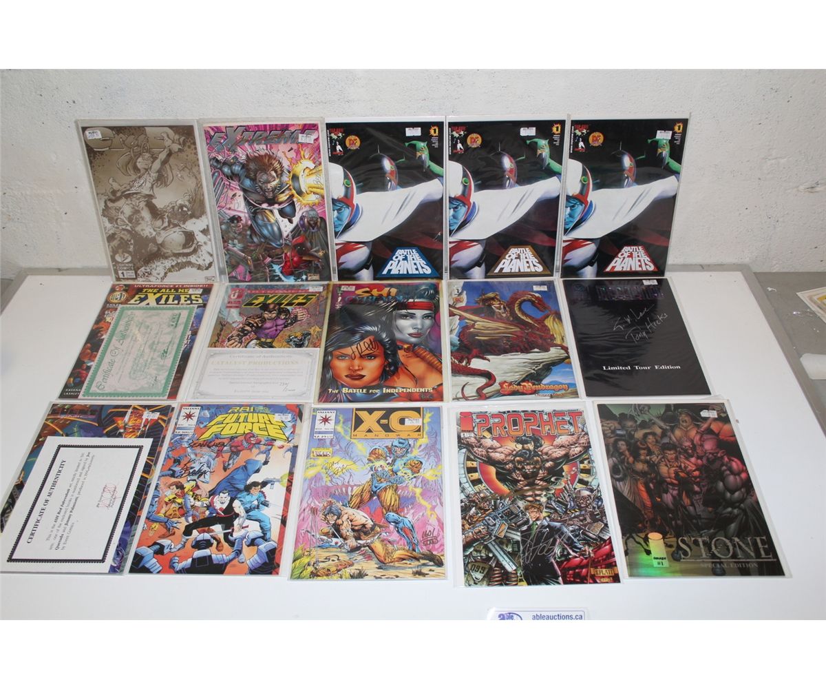 LOT OF 15 ASSORTED AUTOGRAPHED COMICS, MANY WITH COA'S INCLUDES: JOE QUESADA, JIMMY PALMIOTTI, SEAN
