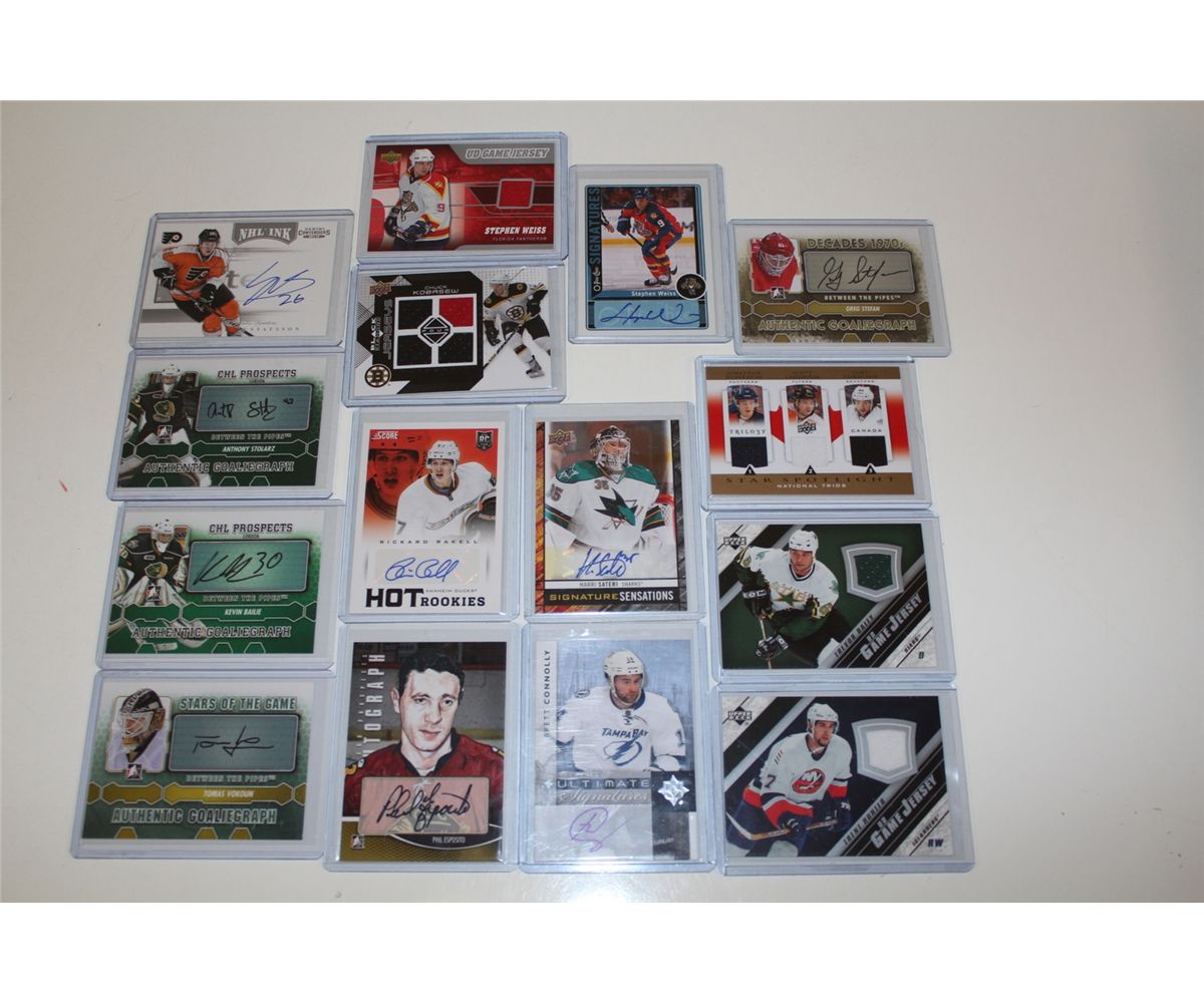 LOT OF 15 AUTHENTIC NHL SIGNATURE AND JERSEY CARDS, INCLUDING STEPHEN WEISS, CHUCK KOBASEW, JONATHAN HUBERDEAU AND MORE!