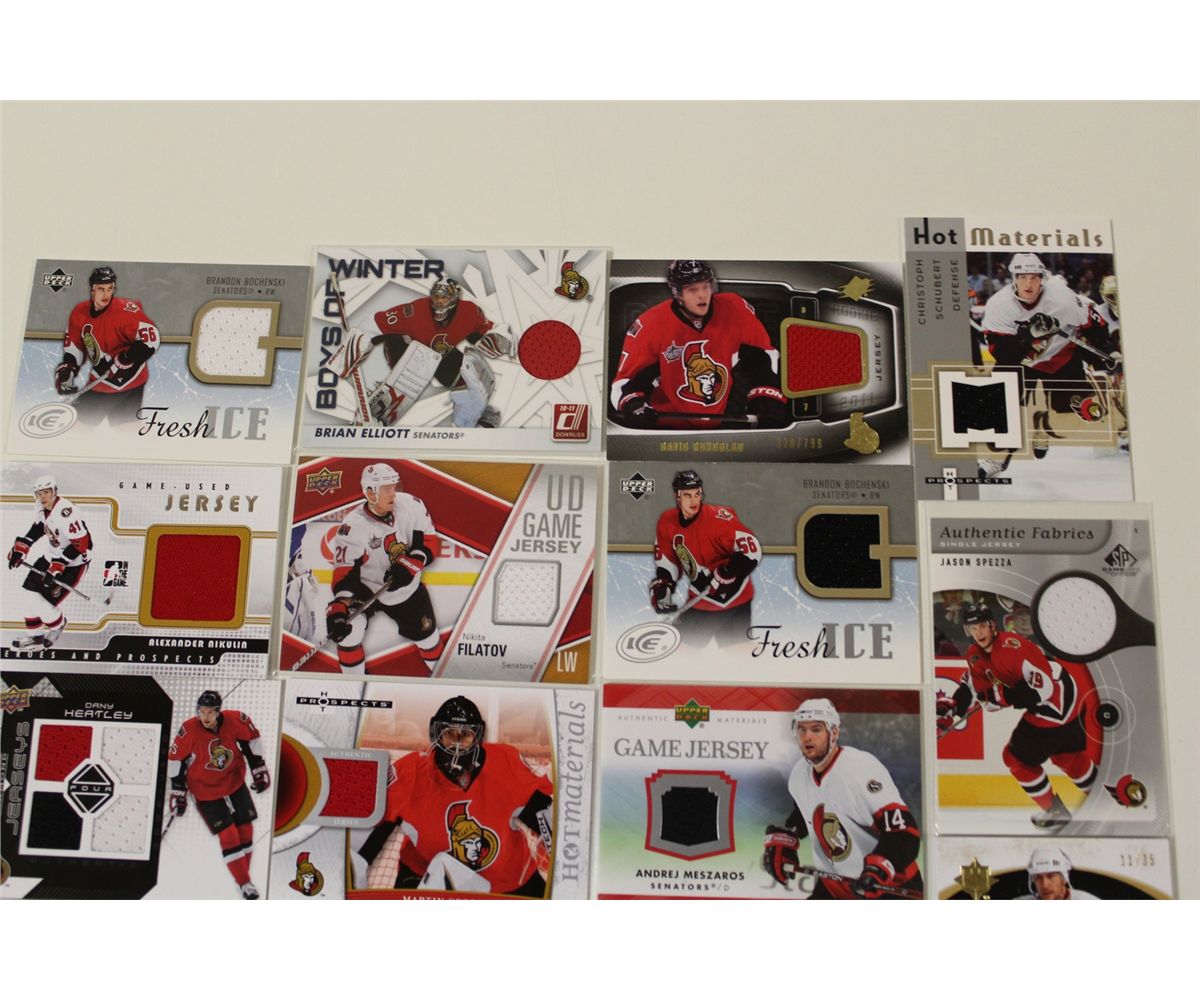 LOT OF 15 OTTAWA SENATORS AUTHENTIC MEMORABILIA CARDS INCLUDING: A. KOVALEV, M. HAVLAT, J. SPEZZA, D. HEATLEY, B. ELLIOTT AND MORE!