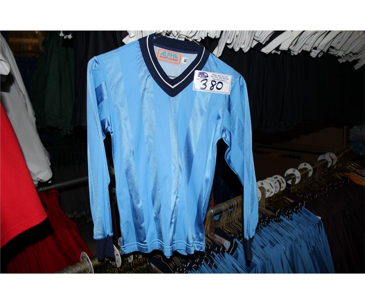 LOT OF 163 LIGHT BLUE STRIPED SOCCER JERSIES SOLD PER JERSEY, MUST TAKE ALL.