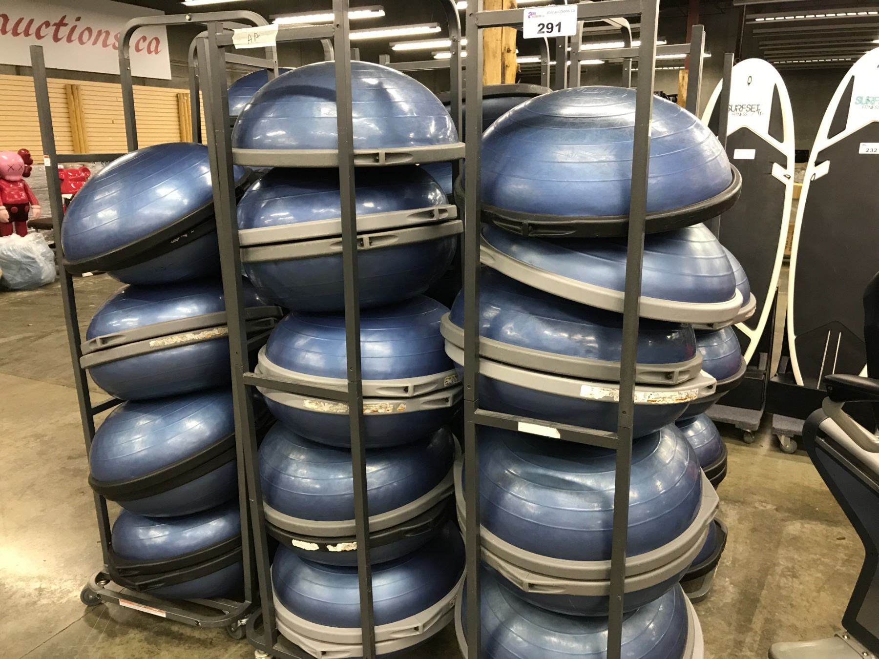 LOT OF 17 BOSU BALLS WITH MOBILE RACK