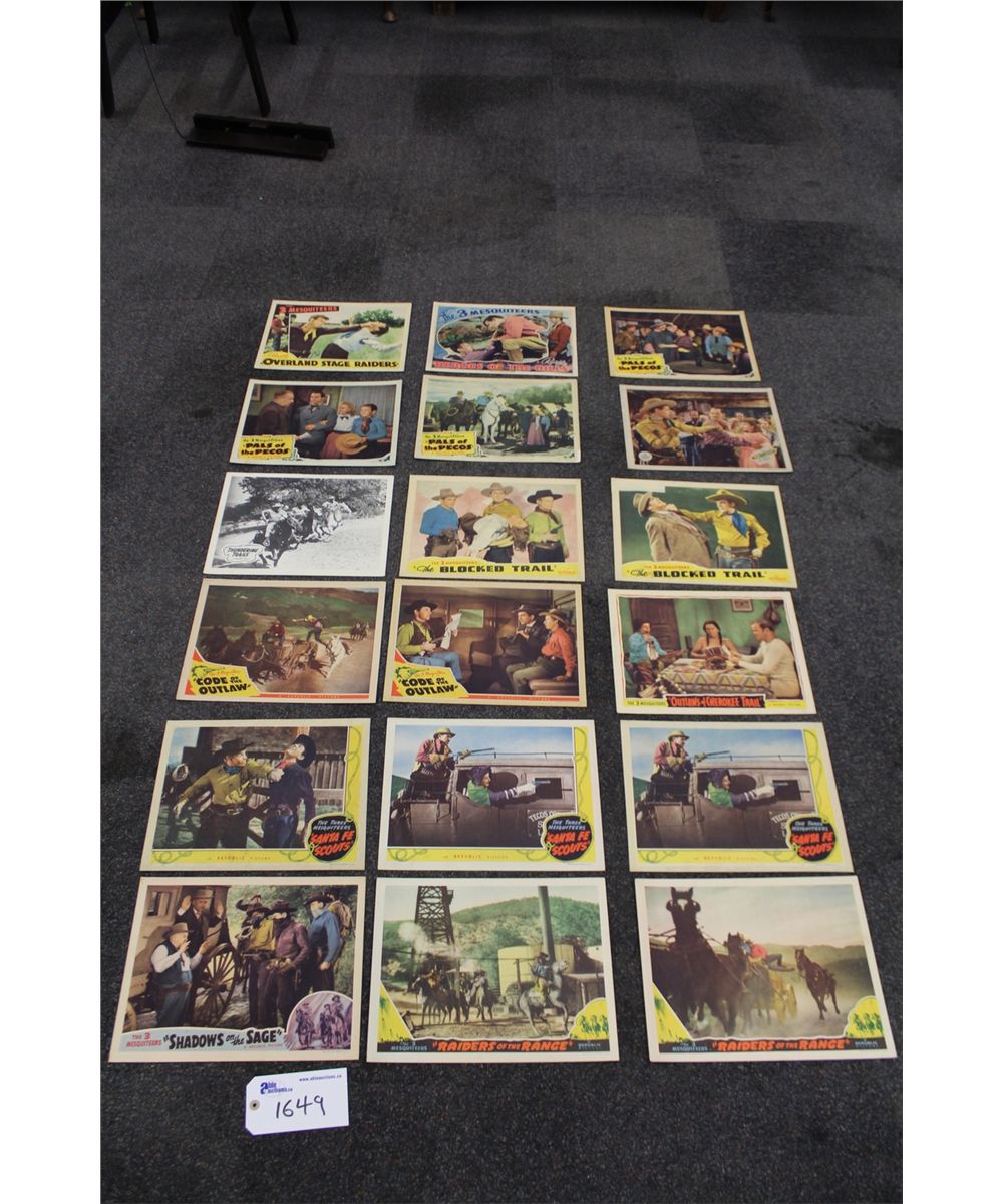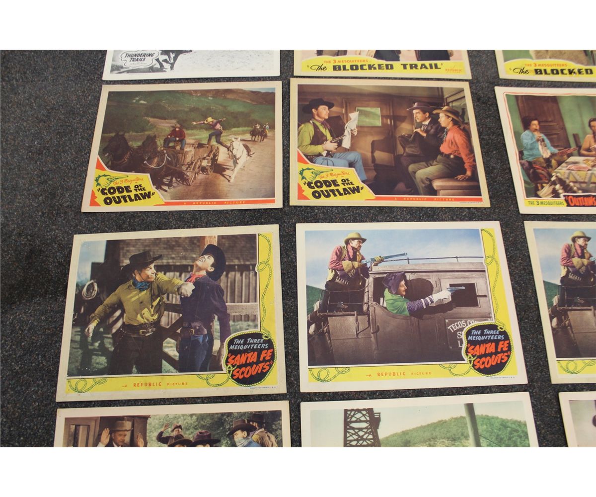 LOT OF 19 THREE MESQUITEERS LOBBY CARDS, VARIOUS TITLES